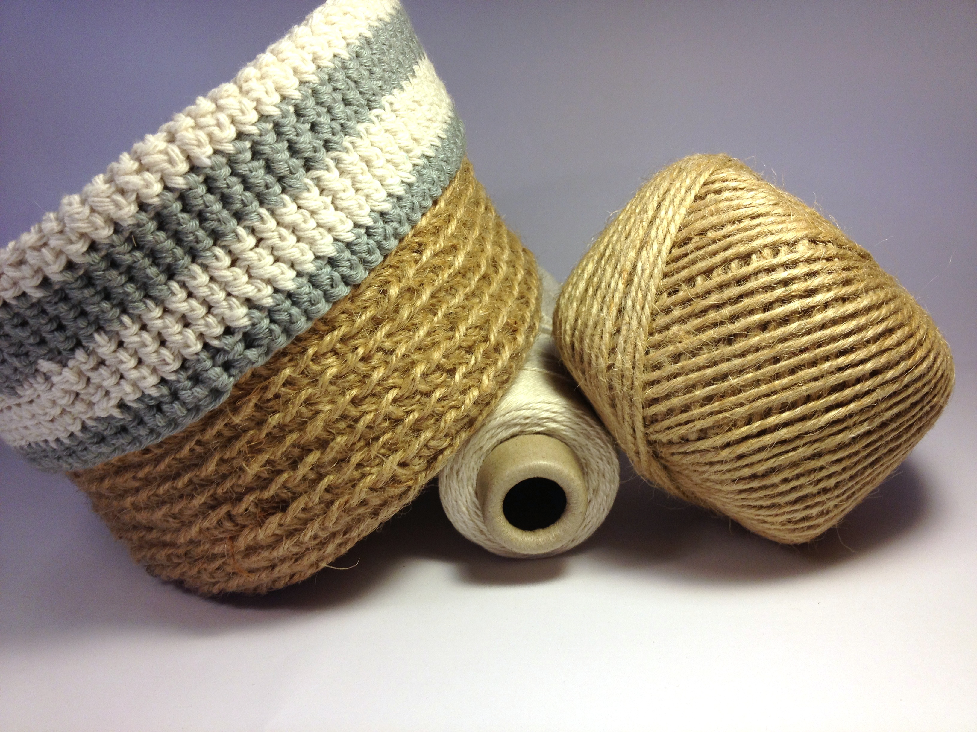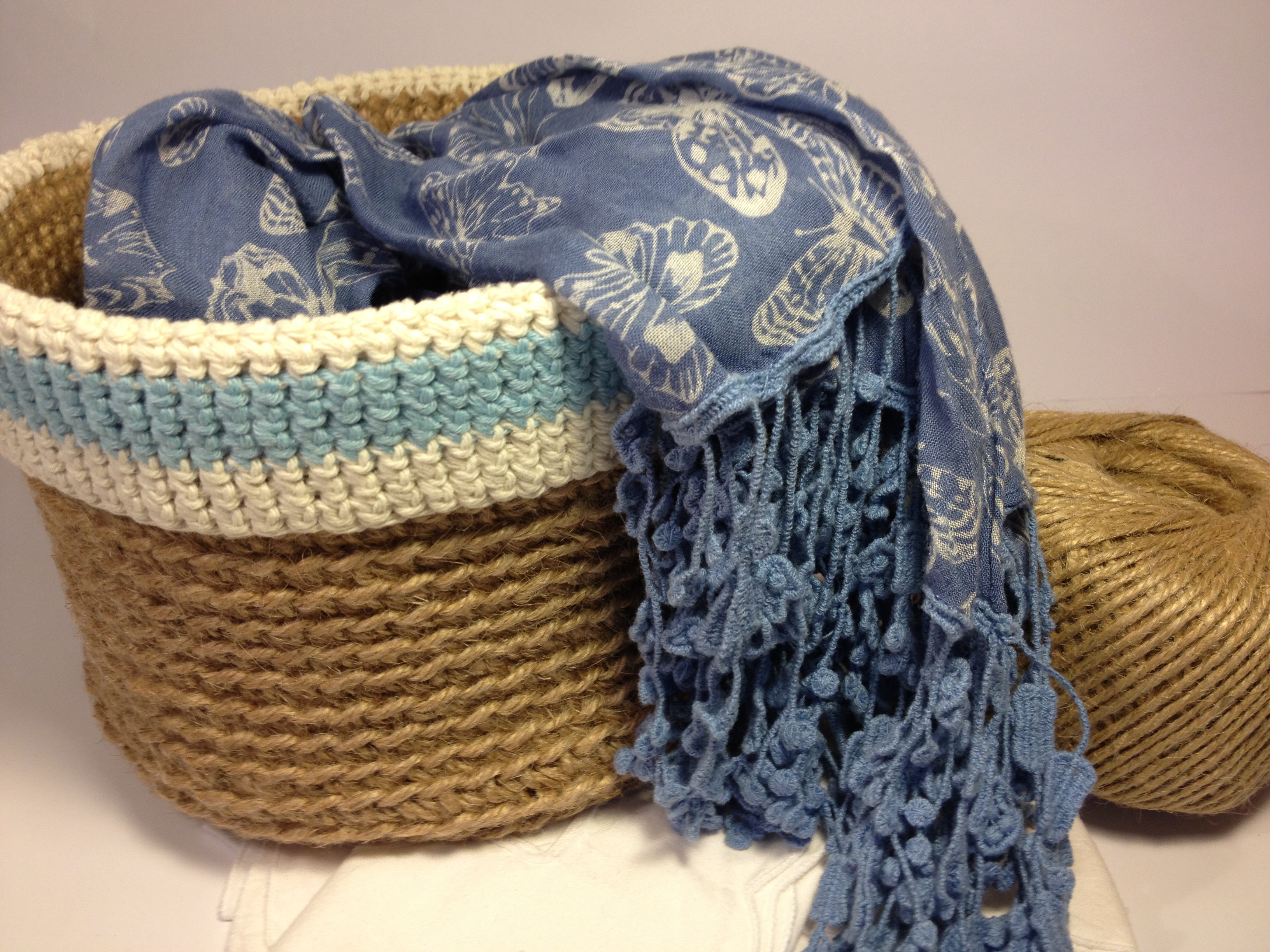 After much procrastination I have finally managed to clear my work bench, pin up my backdrop, gather the angle pose lamps from around the house and get down to taking some half decent photos of my crochet baskets.