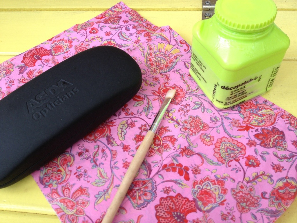 What a good idea. I have the decopatch paper already, and an ugly glasses case.