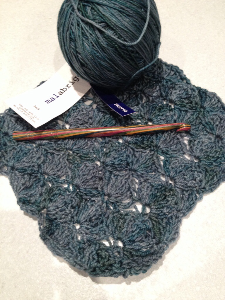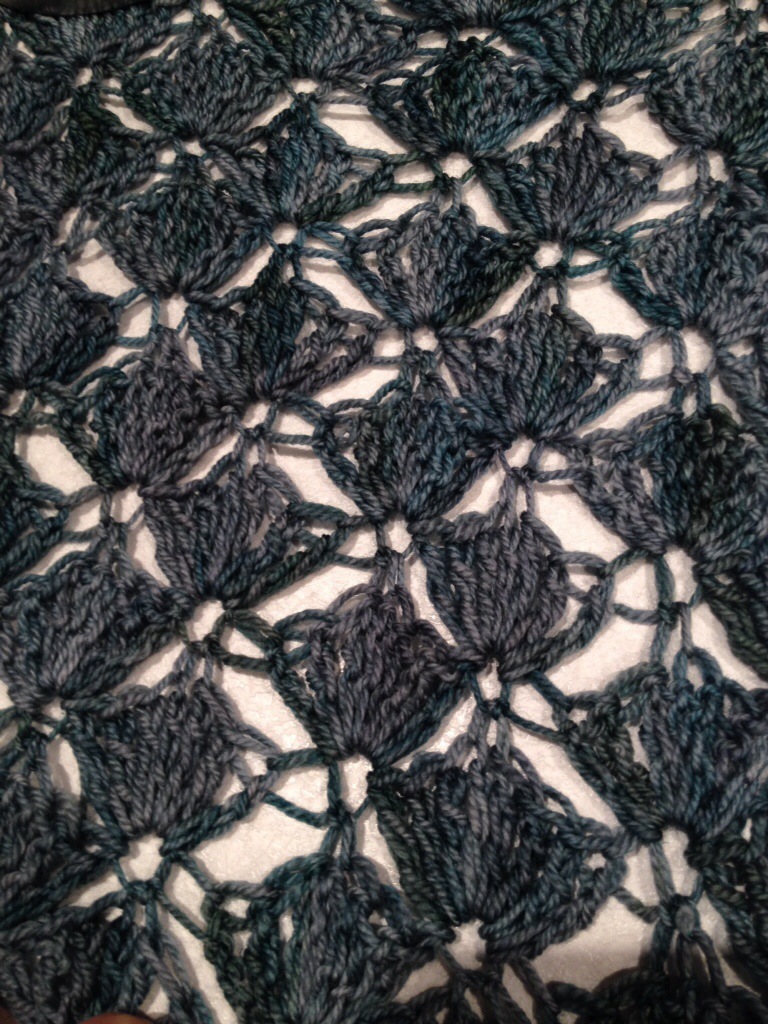 I’ve used an 8mm crochet hook to keep it as loose as possible. I’m hoping the lace will open up on blocking.