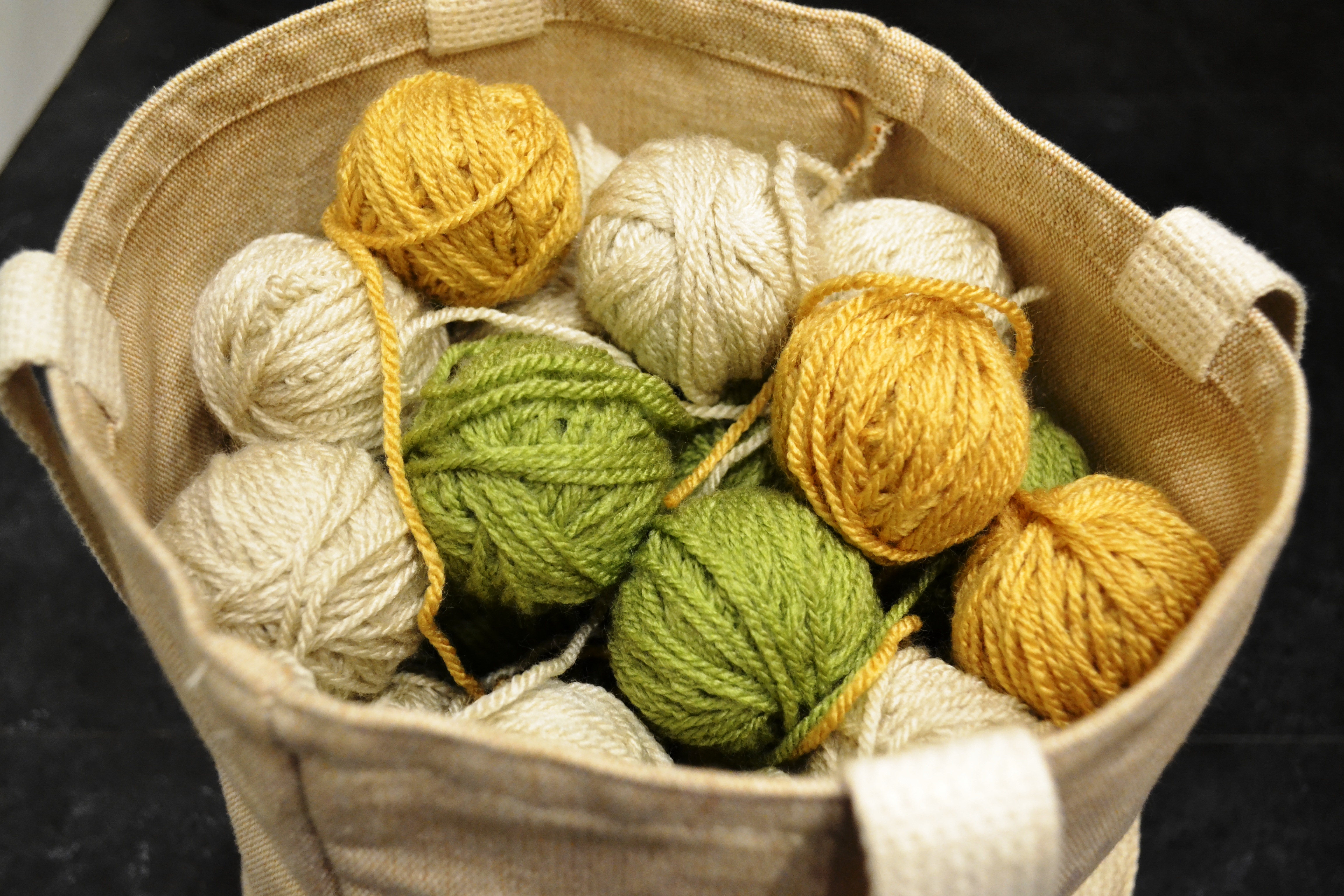 Then tie a length of yarn around the middle, wrapping around twice and tying tightly with a good old granny knot.