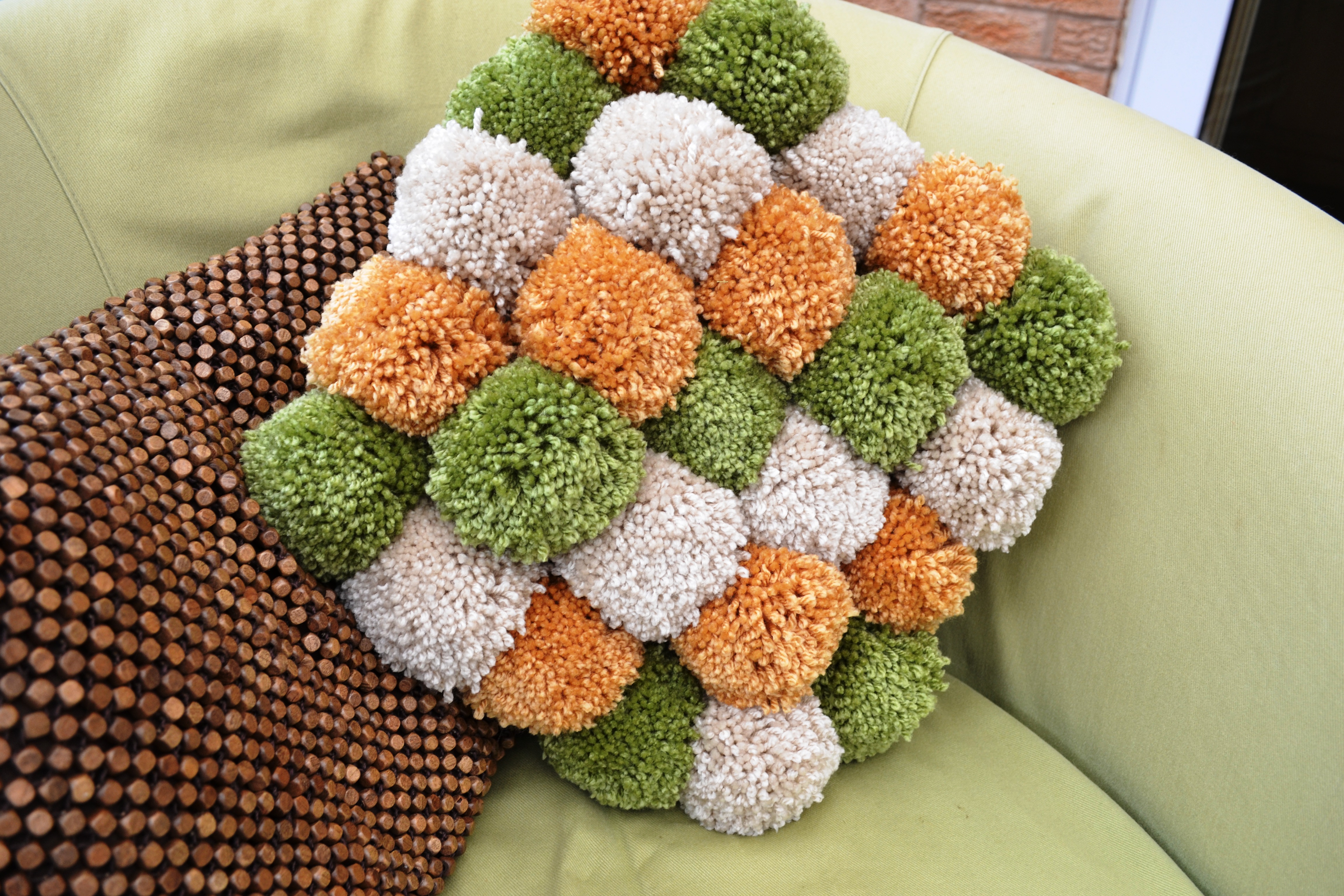 This made the cushion ‘flatter’ which made the pom poms sit more snuggly together.