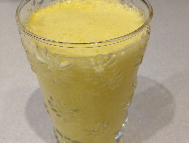 3/4 Pineapple, 3cm brocoli stalk, 2cm ginger, ice