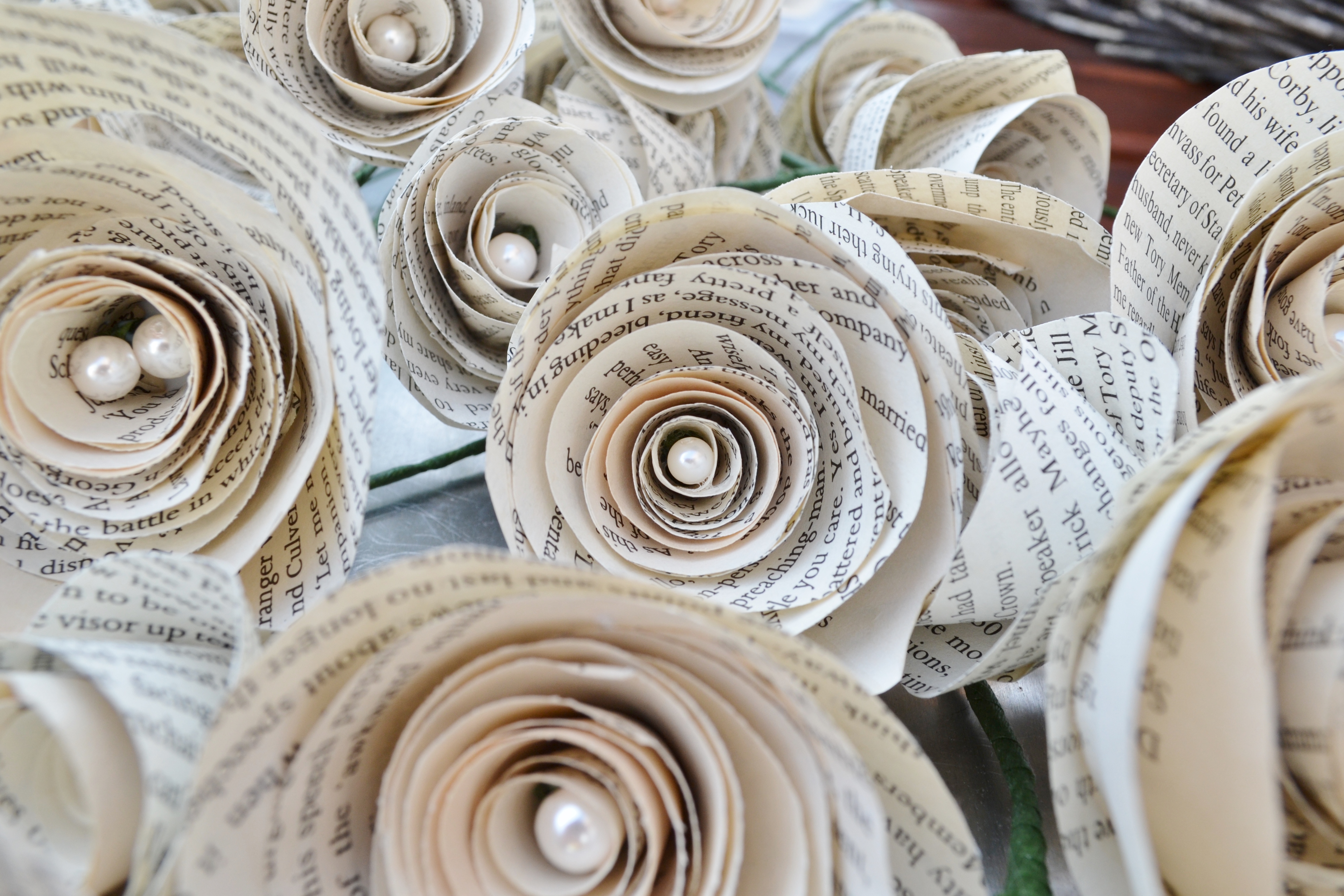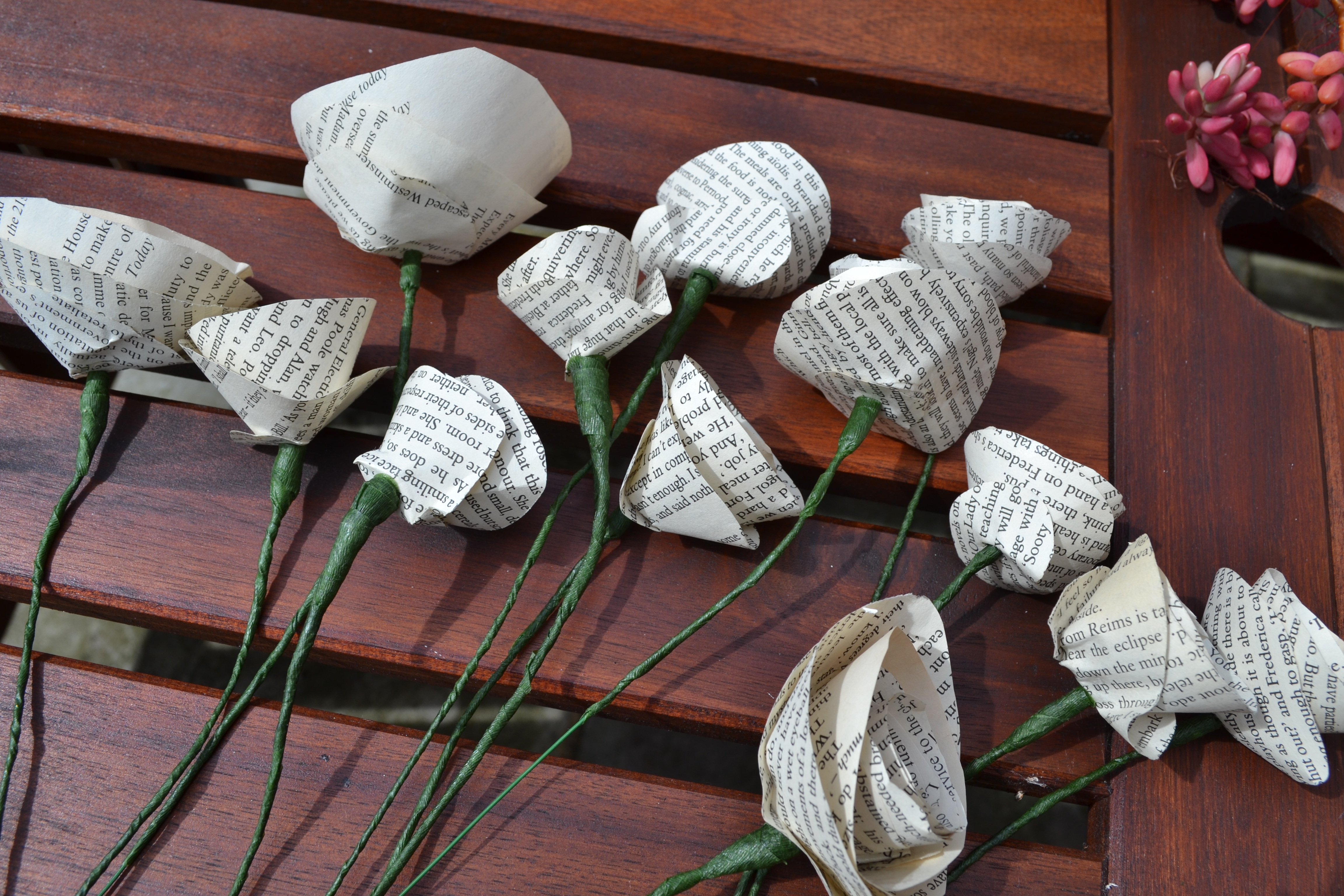 They look beautiful. Lovely touch the pearl. I remember your previous post and had intentions of making some with old books. The other day I bought an old very cheap dictionary for paper crafting – my main thought was to print silhouettes through the printer but ‘word roses’ would look a treat.