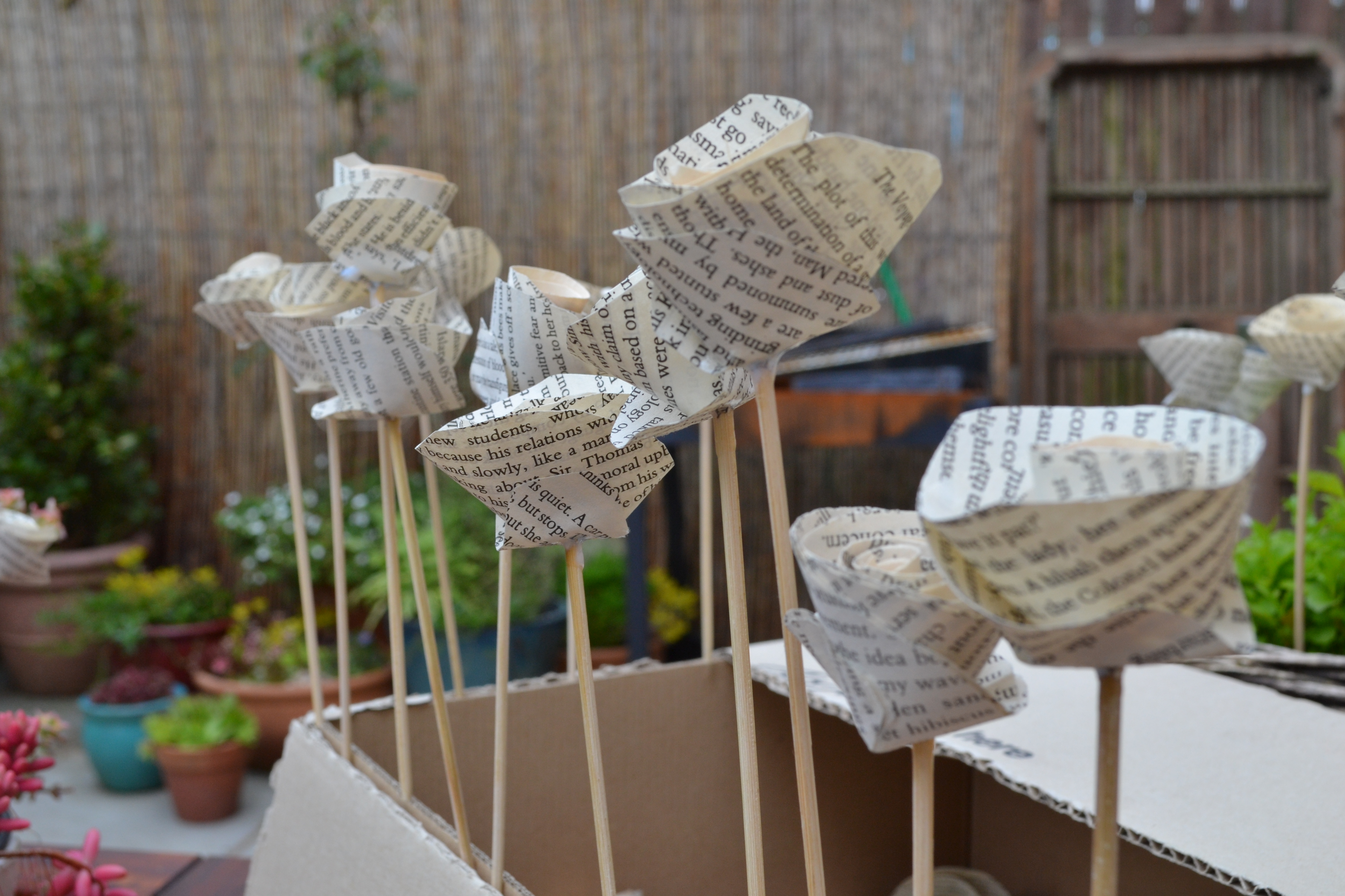 A cool wet Saturday was followed by a warm sunny Sunday. With less than 5 weeks until the wedding I set myself up in the garden to wire up my paper roses in preparation for incorporating them into bouquets, table centre pieces and other displays when my mum comes across to help, a couple of days before hand.
