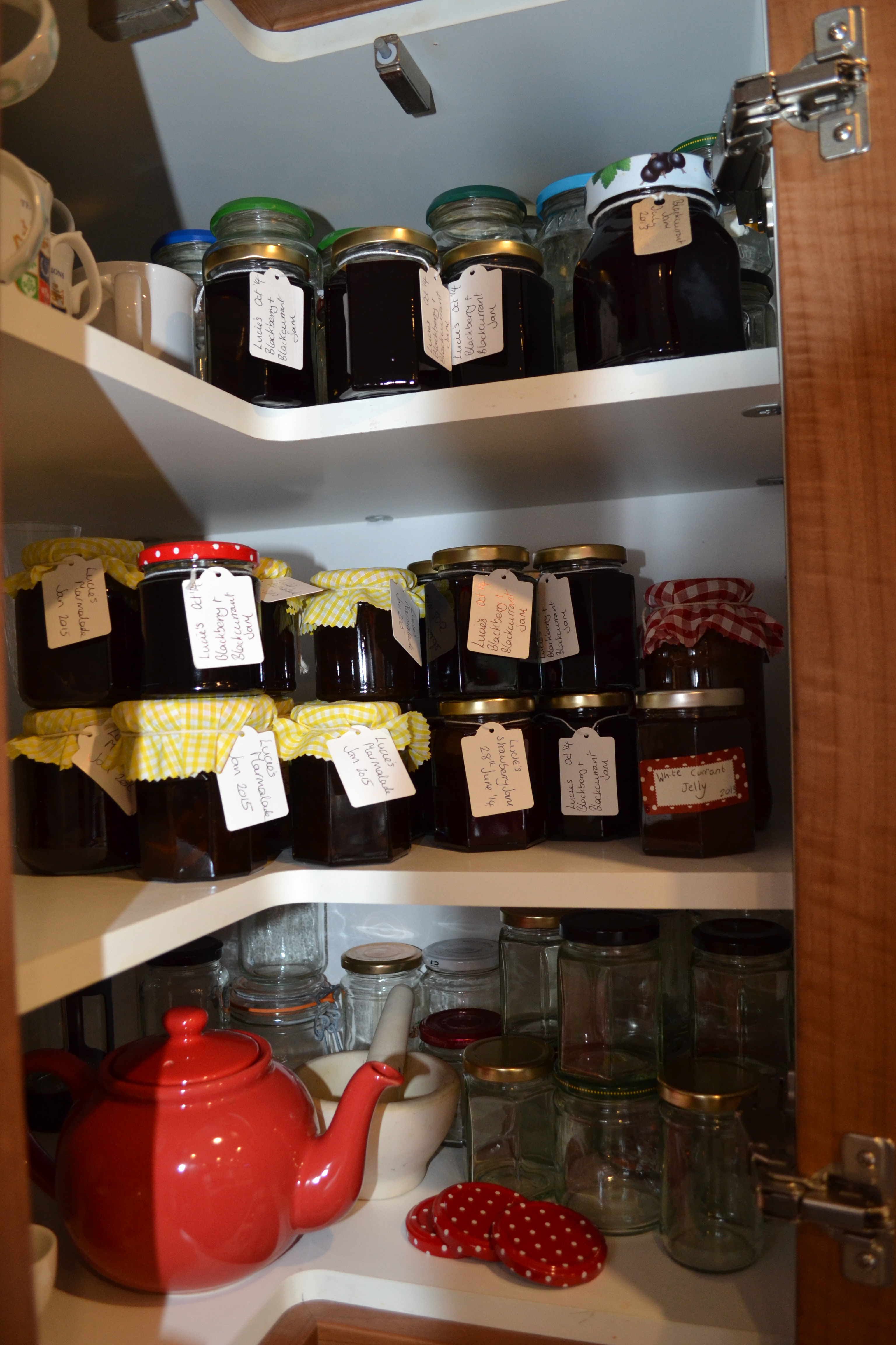 I’ve plenty of ‘Blackcurrant and Blackberry’ left but I’m running low on my Strawberry so I’ll be eeking that out until June. I’ve some mincemeat that’ll survive until next Christmas and a couple of red currant and white currant jelly.
