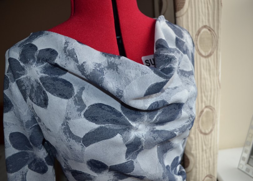 Then I saw the beautiful drape; how the fabric fell in folds. So I set about searching for a pattern for a cowl top for a non-stretch fabric.