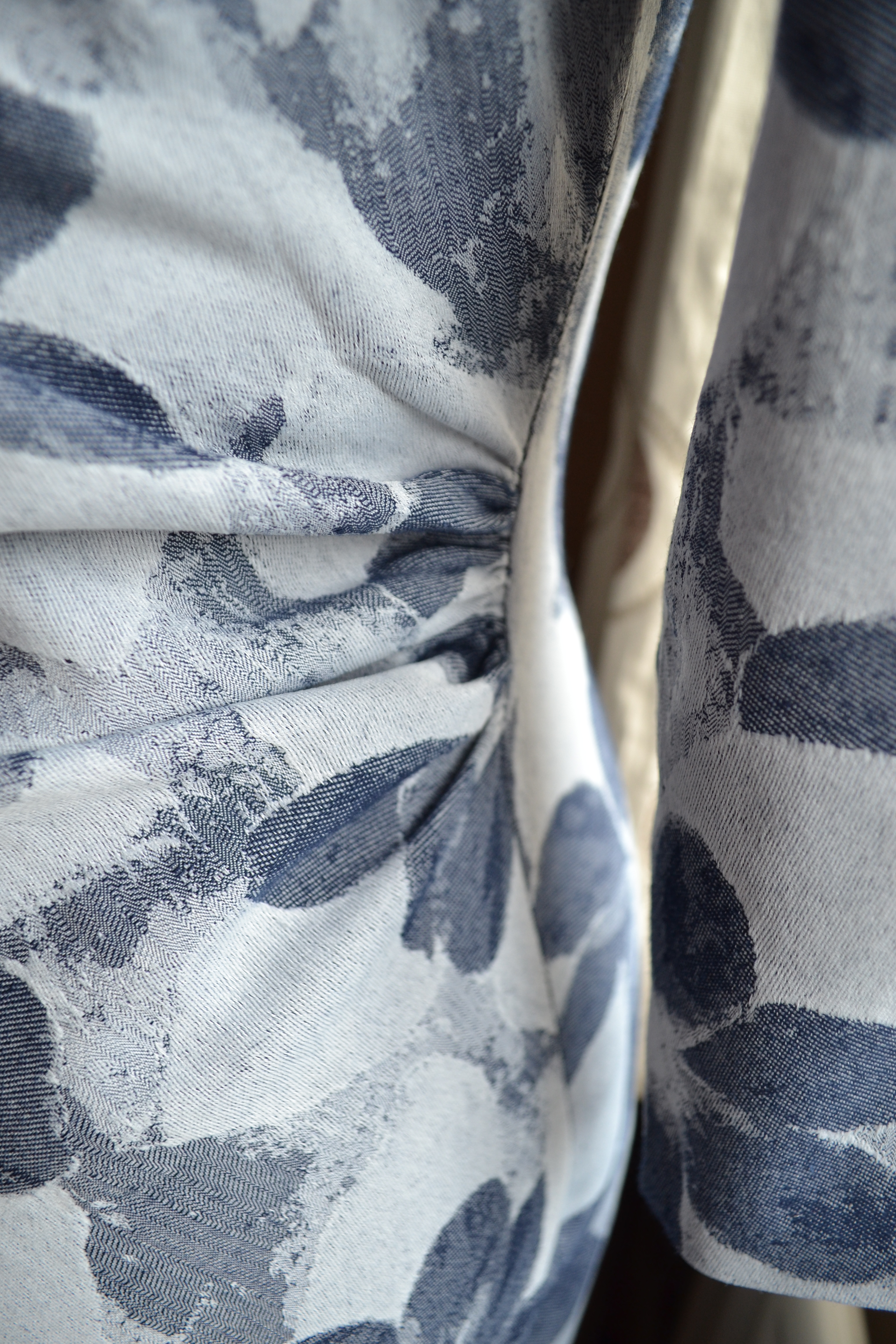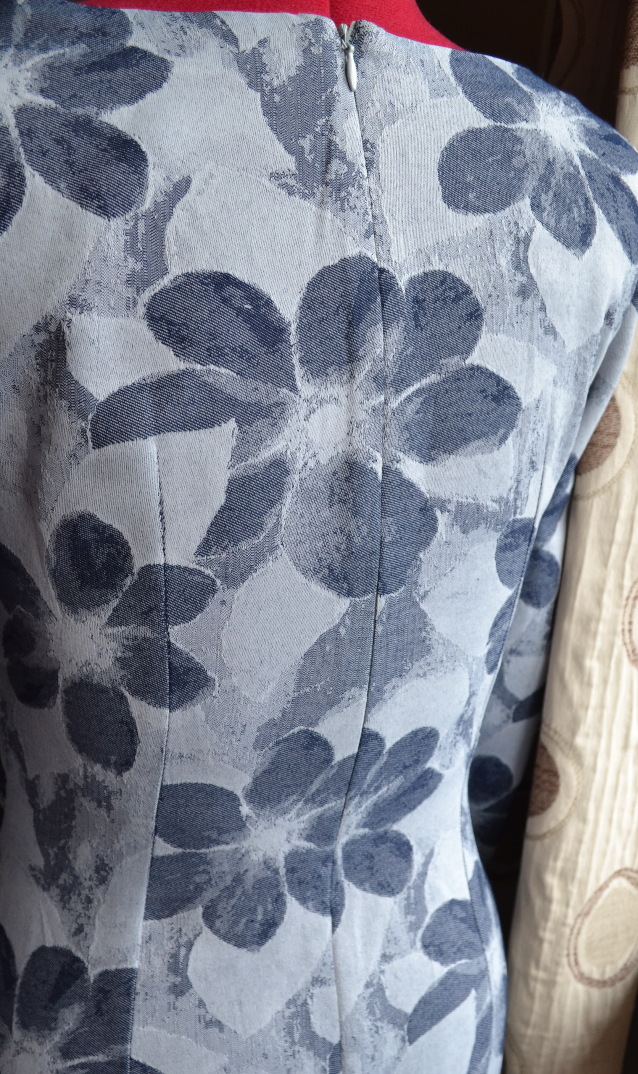 But the 4 inch size of the flower of the fabric ( Blue Ultra Soft Floral Jacquard dress fabric) that dropped through the door threw that option out of the window.