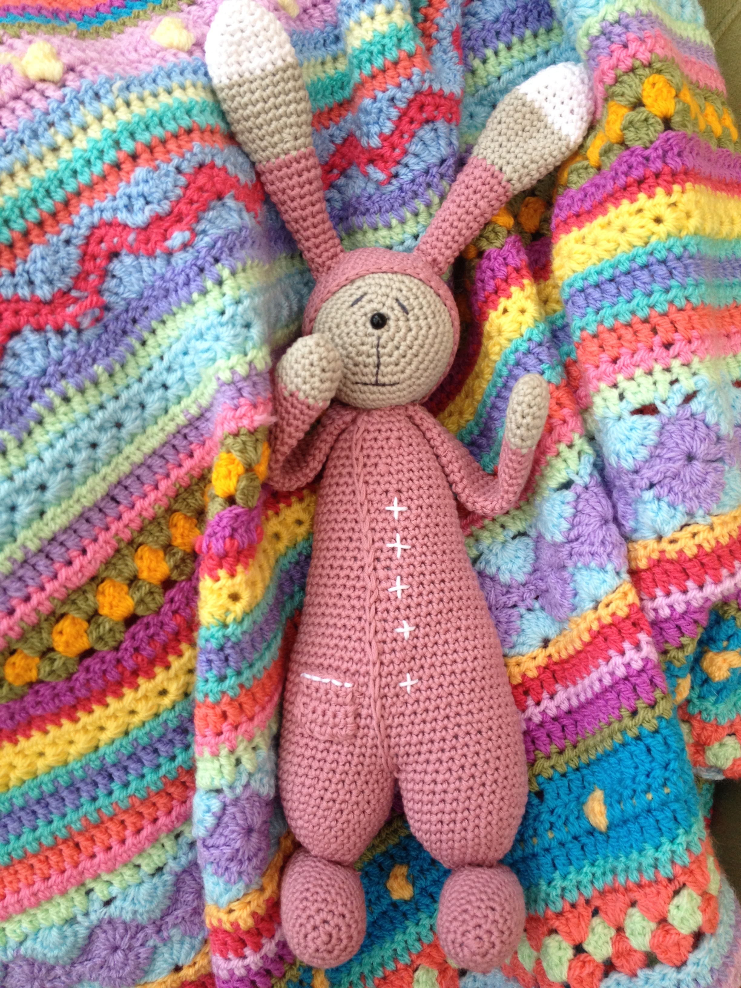 I also replaced the buttons with stitching. I want this bunny to be loved.