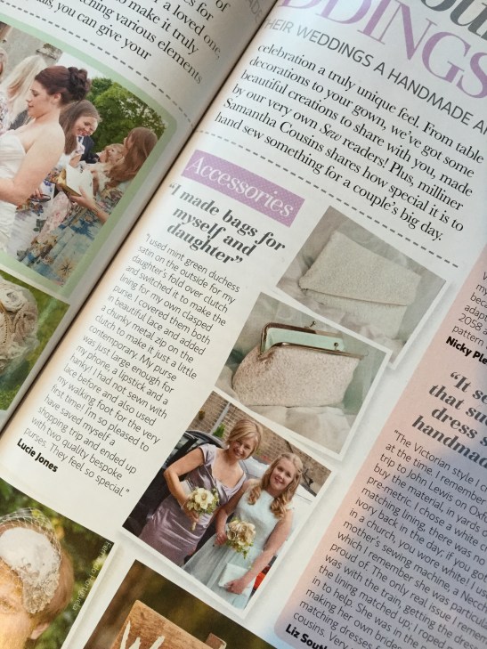 I just have this to report. The wedding purses I made for myself and Freya, for my wedding last year, made it into Sew Magazine as part of their wedding day makes article.