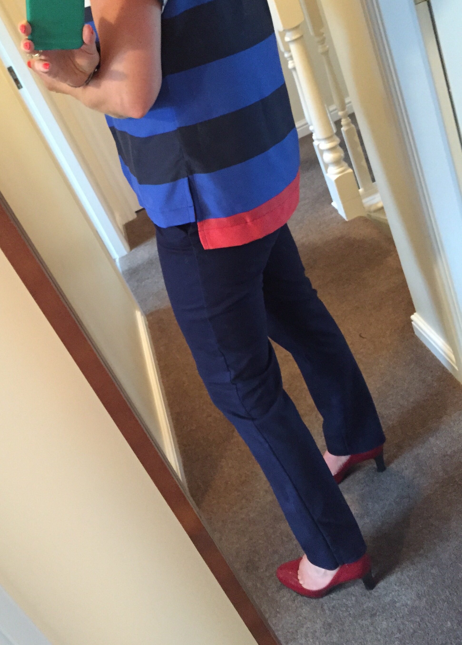I’ve made it true to pattern with a high/low hem but I’m not entirely sure about the red stripe along the ‘low’ section. I might take it off. What do you think?