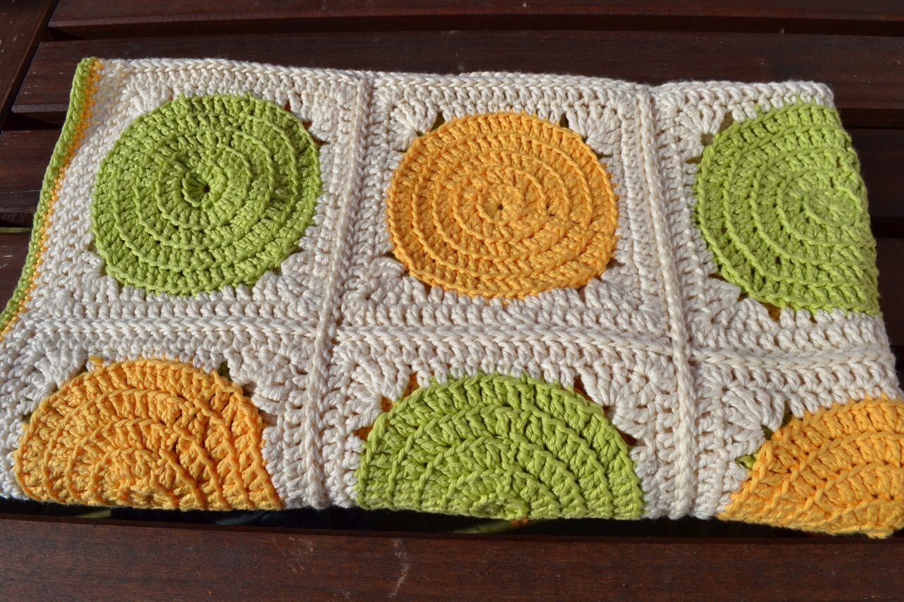 It’s a simple pattern, the same one as I used above but with a variation on when I changed colour from the ‘wheel’ part to the ‘square’ part, found on the 3 beans in a pod blog.