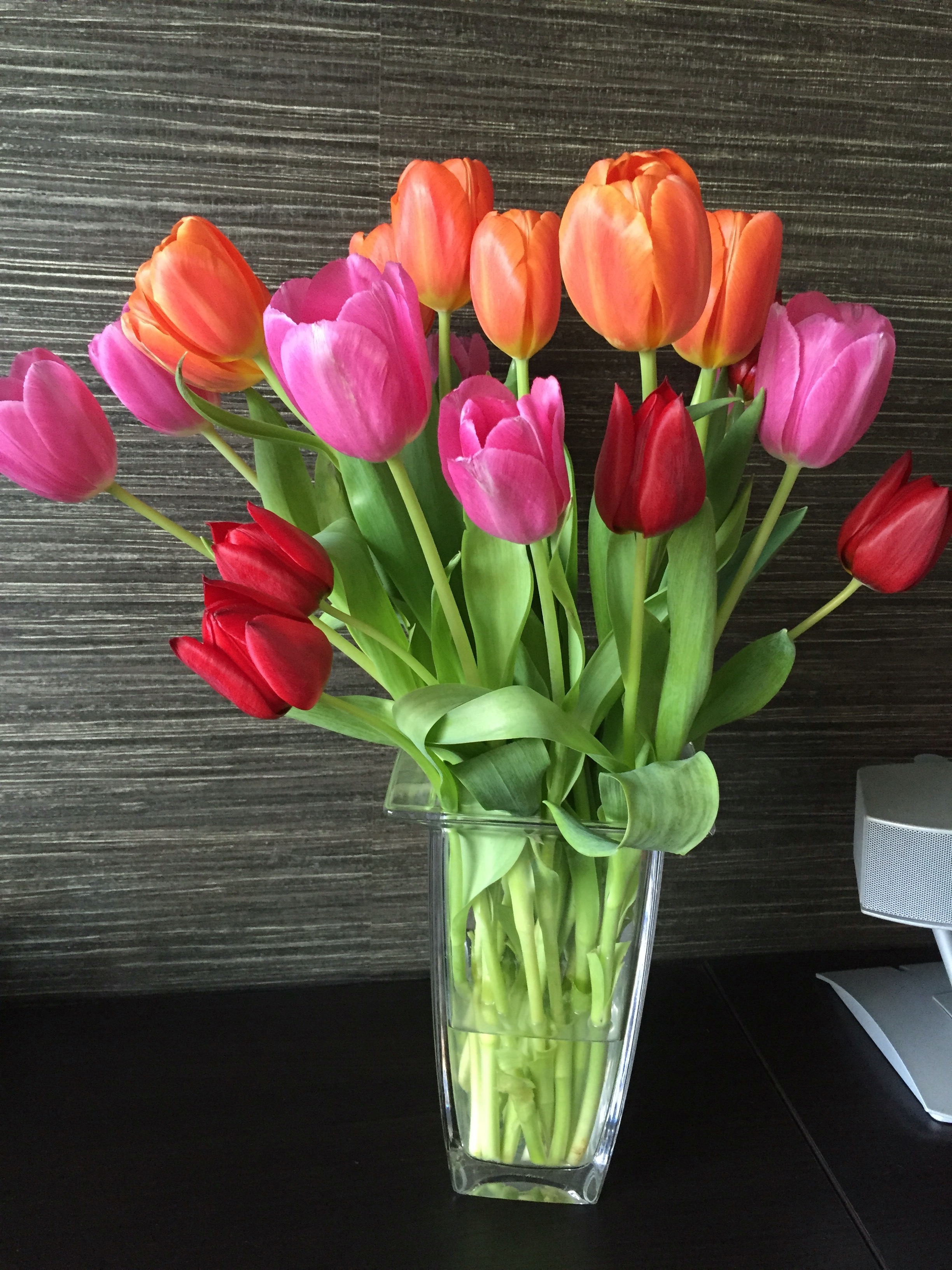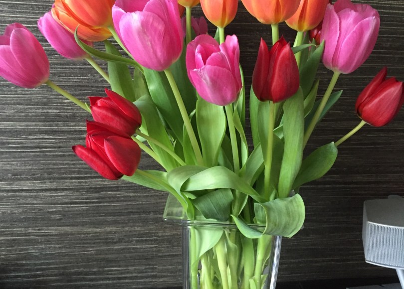 I leave you with these gorgeous tulips; a thank you present from my husbands son and daughter-in-law for lining some curtains.
