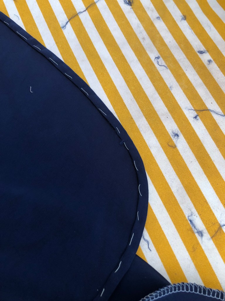 One of the very first sewing things you are instructed to do was carry out the 2 buttonholes that would take the drawstring cord later. Unfortunately, it didnβt tell you to cut open the buttonholes at this point which proved a little tricky later!