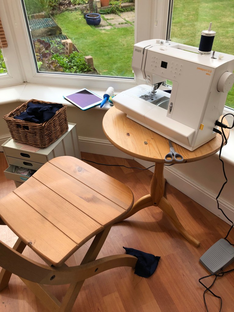 To increase my challenge this was the weekend we had chosen to redecorate the office/sewing room. So, I relocated my machine to this tiny table in the conservatory in one of the hottest weeks of the year!!!