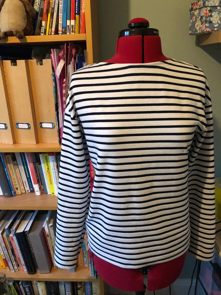 2. Lovely! I agree that a good breton striped shirt is a wardrobe staple. I got mine on Nantucket Island, which seemed a proper place for a good sailor shirt. I think you did well to find a dropped shoulder pattern that didn’t have a crazy amount of fabric under the arms. Excellent job with the stripes as well!