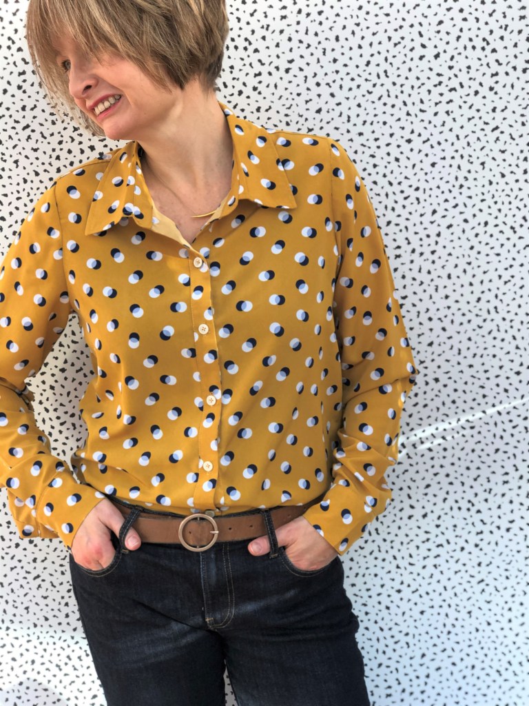 This looks exactly like a Boden shirt!! If you’re wondering about the collar, the reason it doesn’t have a button on the stand is because it’s a button up shirt (as opposed to a button down) – meant to be more casual like you’d see in chambray or flannel. But it still works beautifully in rayon as you’ve demonstrated 😍