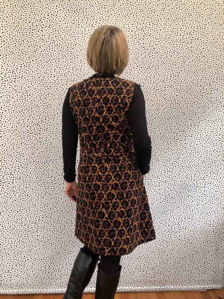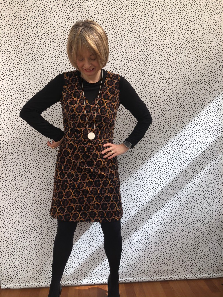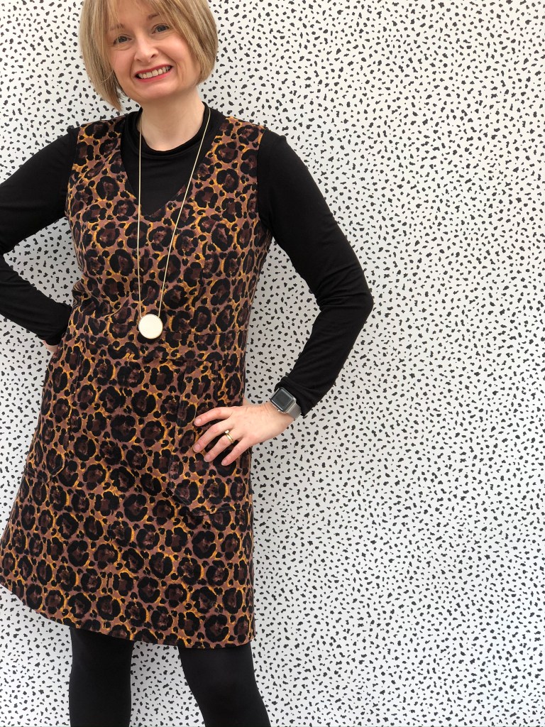 I altered my pattern pieces and made up the dress in this ‘Stay Wild’ needlecord from myfabrics.