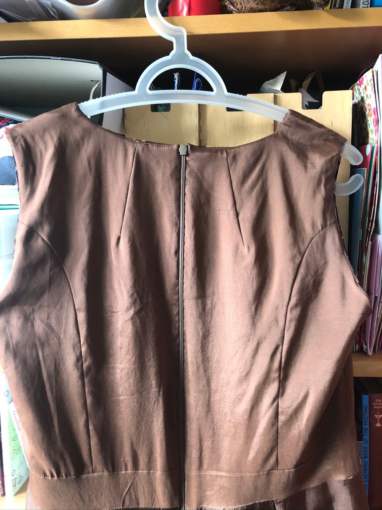 But one thing that did make all the difference was making 2 darts in the neckline in the back to take out my usual gaping issue, either side of the zip. You can’t tell due to the print but you can see it here in the lining.