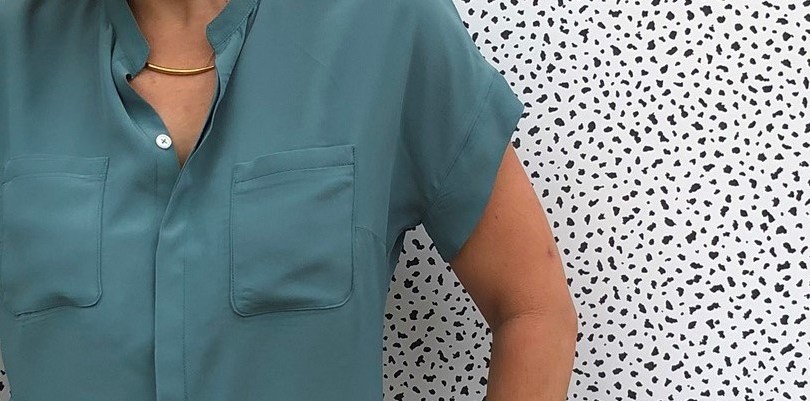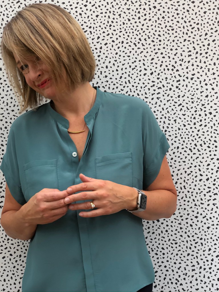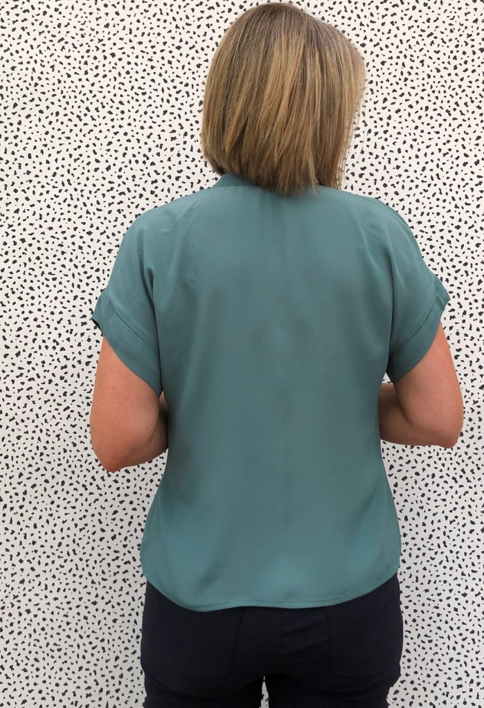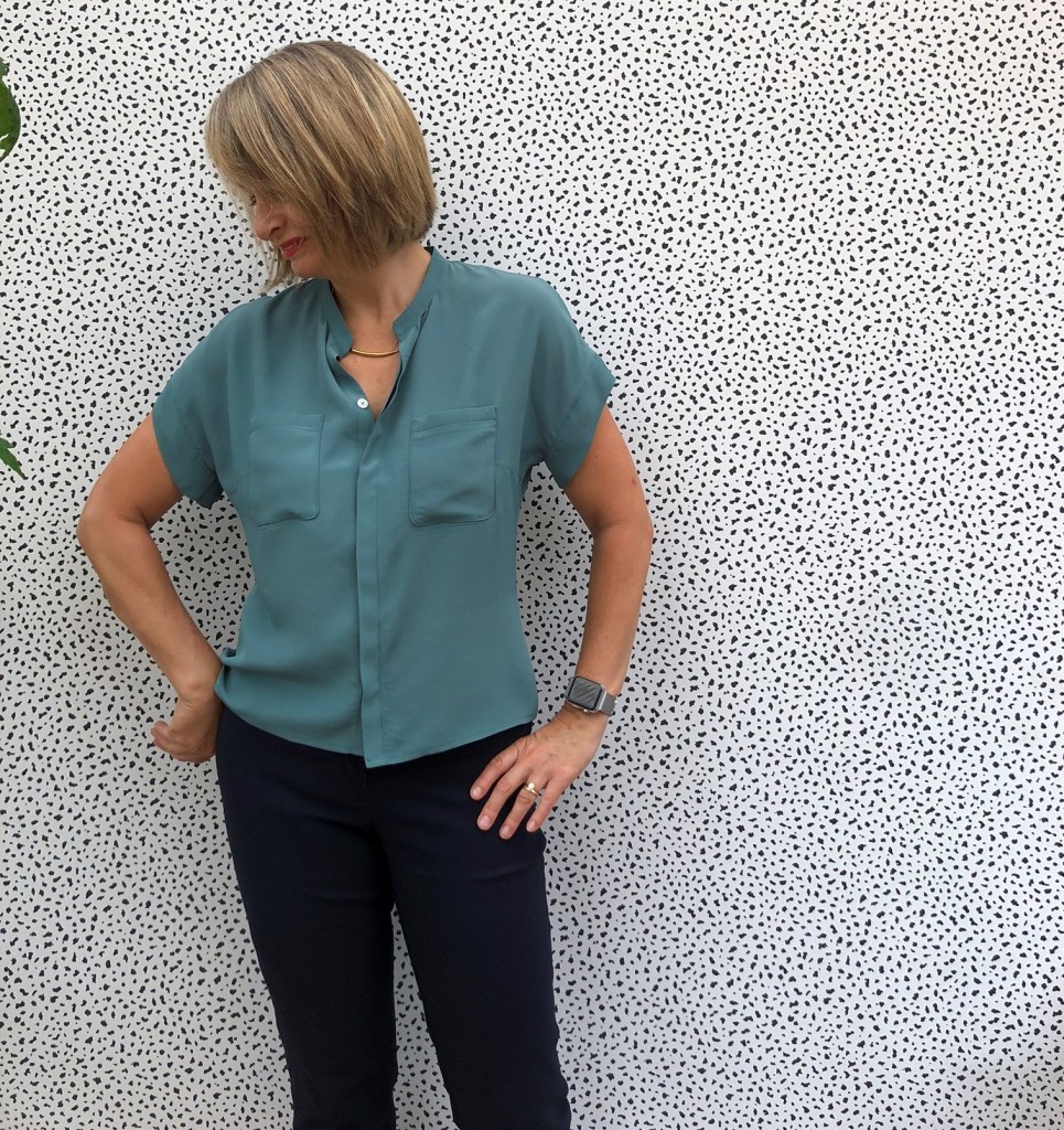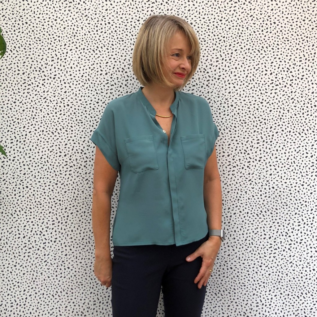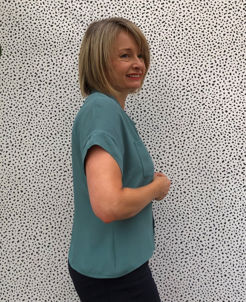 But this one feels ever so slightly restricted. I think it is down to the fabric. The mustardy one is a crinkle, more open weave fabric which has quite a bit of ‘give’ to it. My second, teal one, is in a beautiful silk crepe de chine from Fabworks.