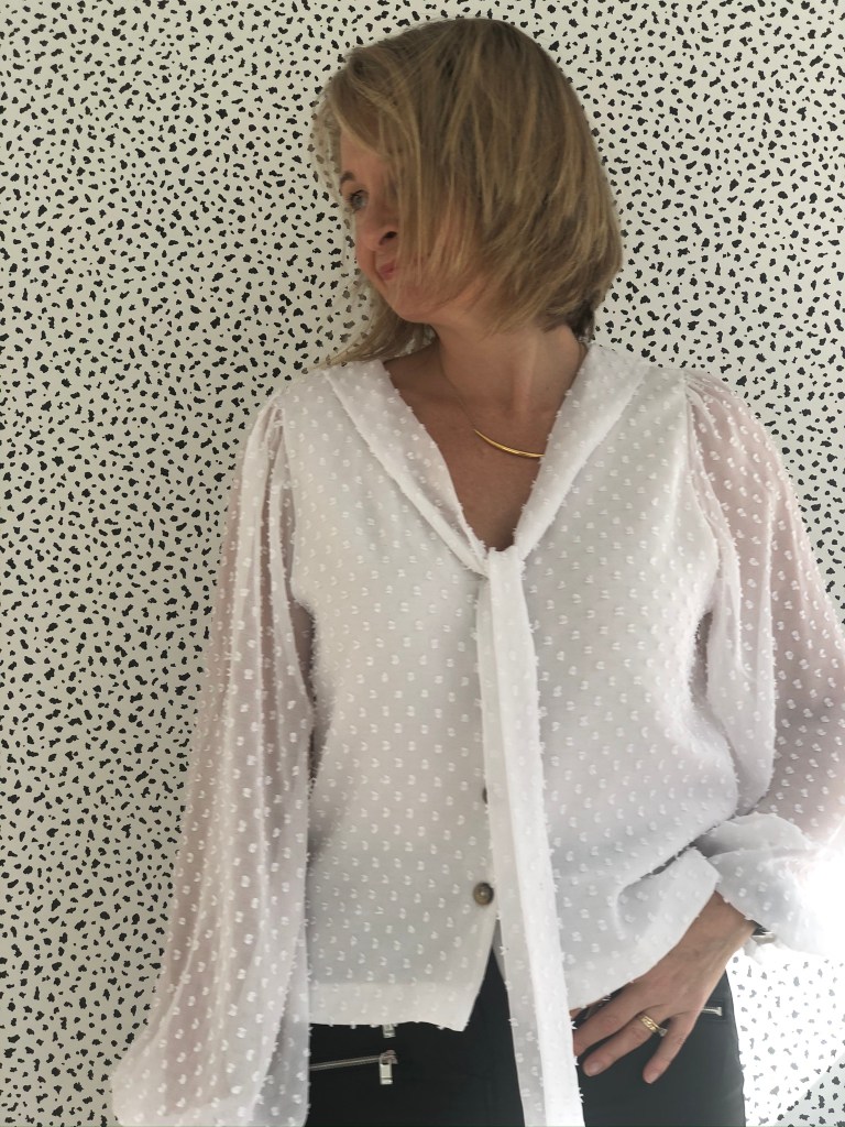 Love this blouse! The fabric you’ve chosen is perfect and the tie adds a nice touch to that style of blouse. Excellent!
