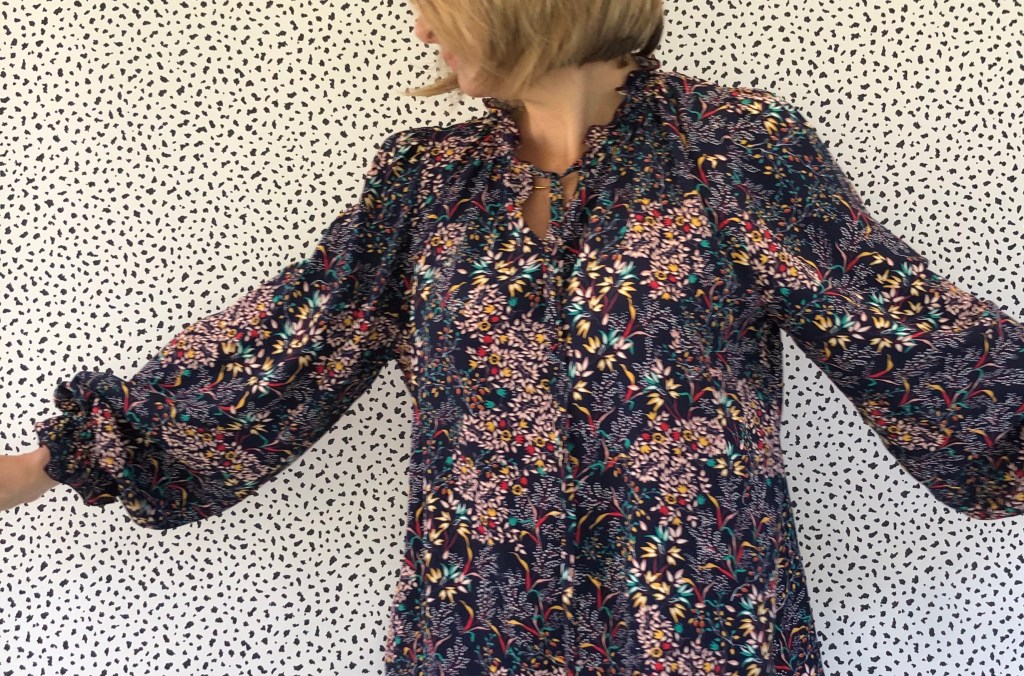 I wanted something fairly casual that I could wear working from home. Something comfy, but pleasant to look at and roomy enough to wear a cami underneath. My fabric choice means it doesn’t need ironing! I just hang it up wet, on a hanger and voila, ready to wear.