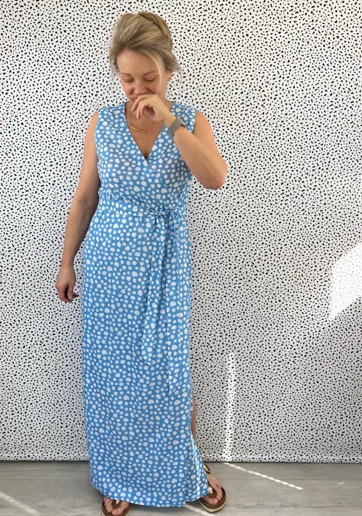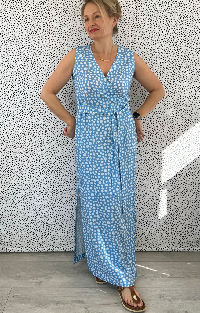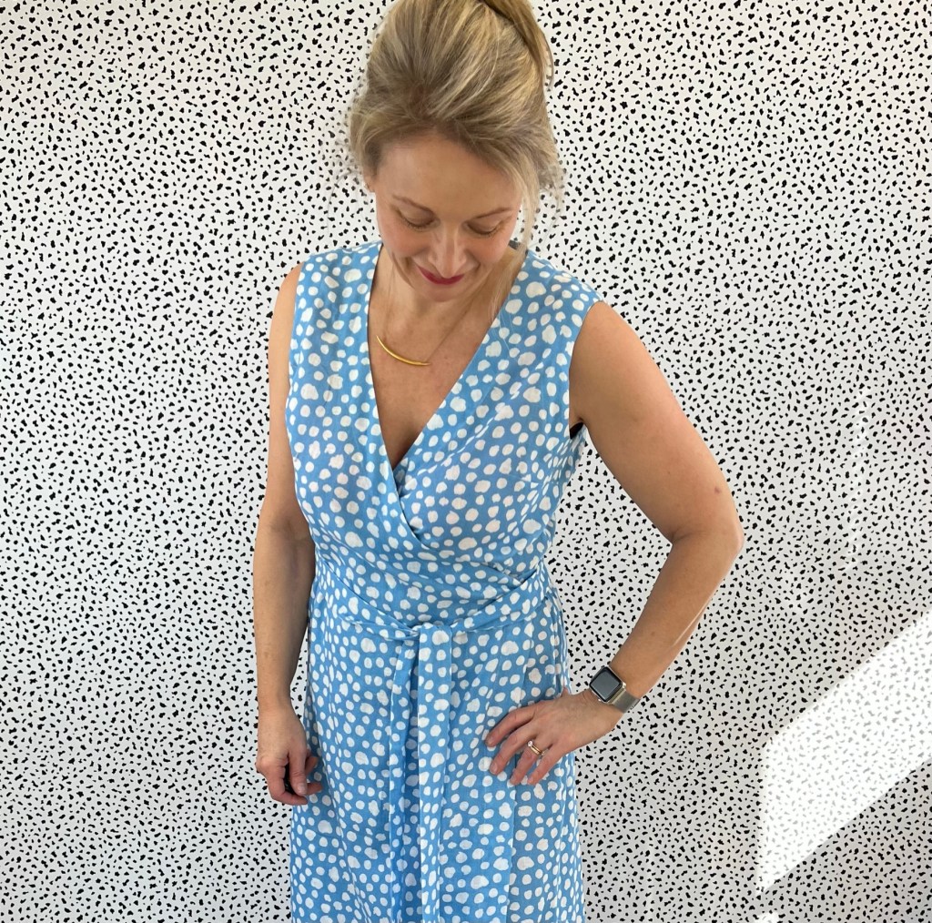 For a wrap dress there is quite a lot that goes into this make, The Highlands Wrap Dress is a woven dress with a faced V-neckline, elasticised back waistband, and waist ties. There’s a midi and a maxi length with a long slit and short sleeves or no sleeves with armhole facings. There are many beautiful ones on IG.