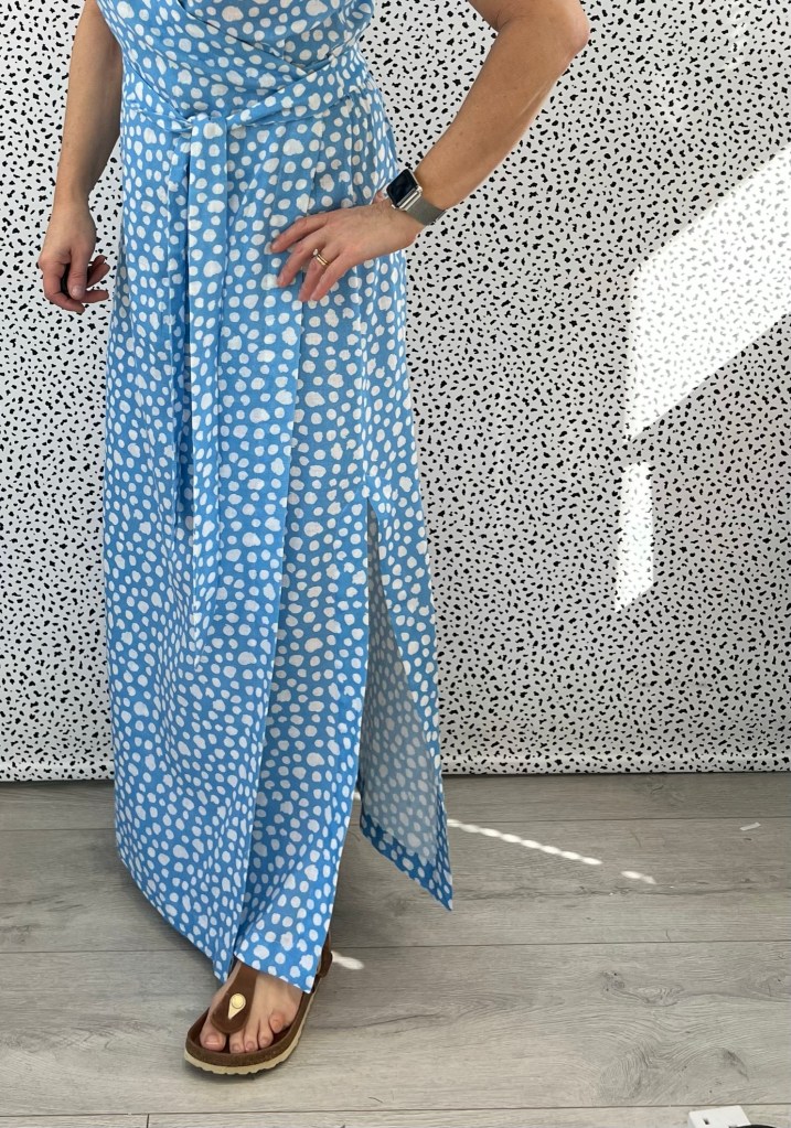 The fabric is a Lady McElroy spotty viscose linen in ‘Sky’ from Minerva. I wasn’t sure whether to go for the maxi or not but I thought I’d go with the longer length and perhaps crop it in the future.
