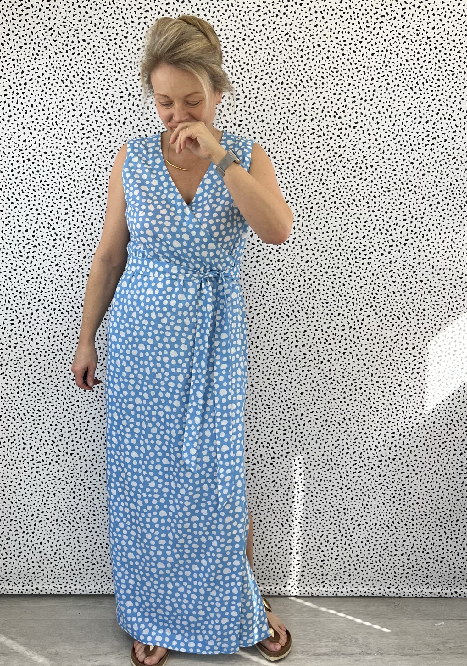 The fabric is a Lady McElroy spotty viscose linen in ‘Sky’ from Minerva. I wasn’t sure whether to go for the maxi or not but I thought I’d go with the longer length and perhaps crop it in the future.
