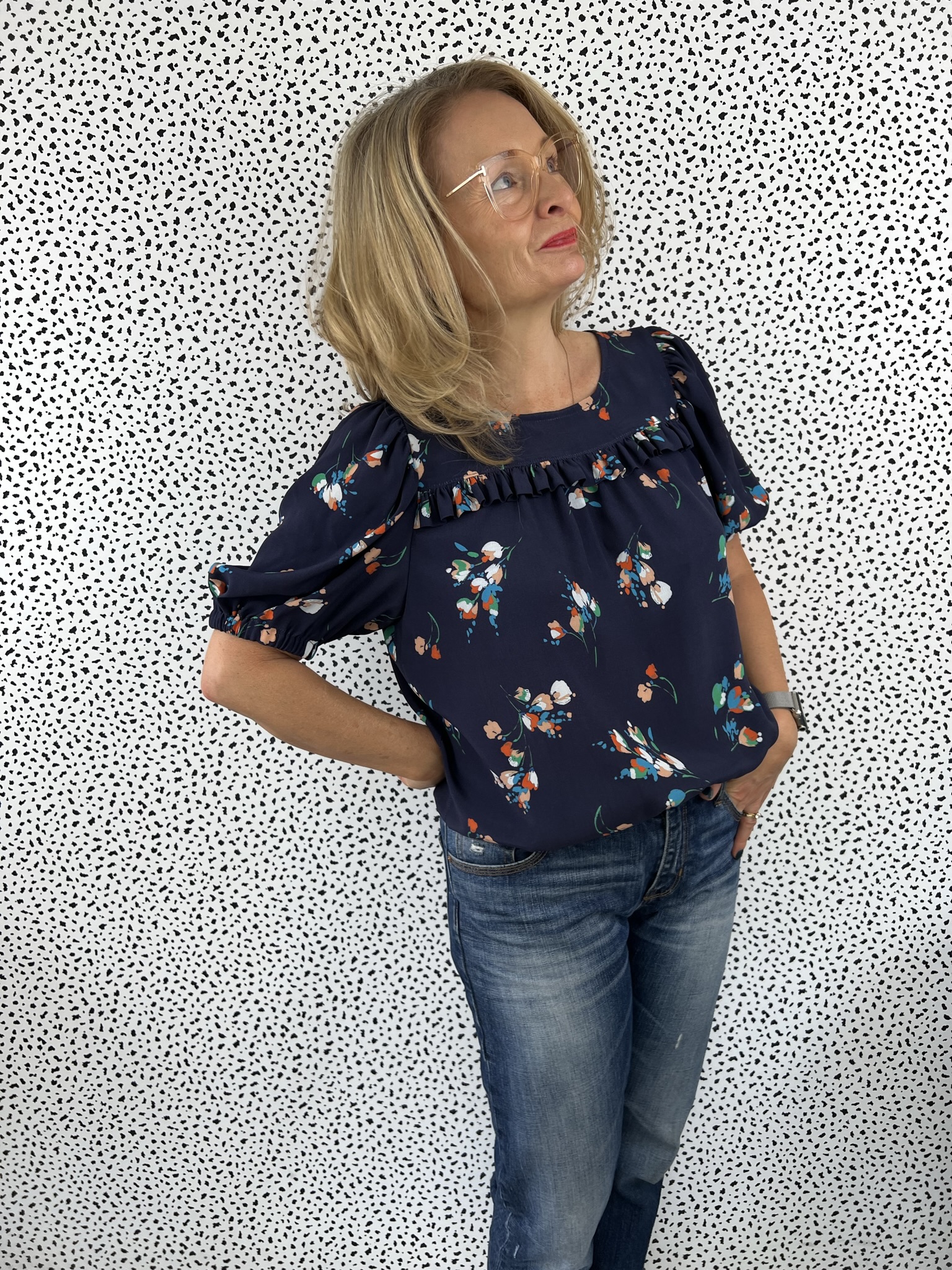 I’d love to remake it with longer sleeves and use a narrow cuff, much like my recent Roscoe blouse instead of the elastic which I find feels a bit odd sitting around my arm.