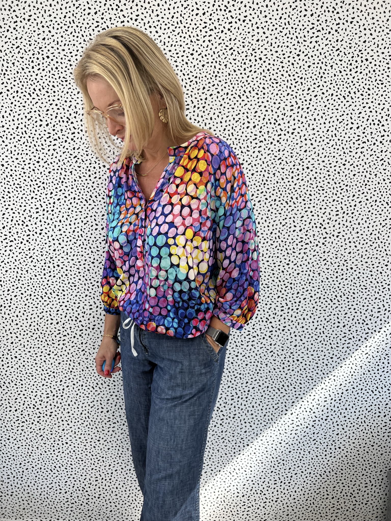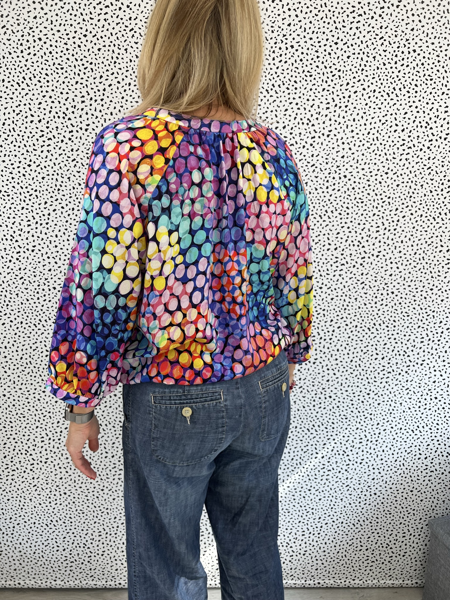 Love that fabric. Pretty blouse.
