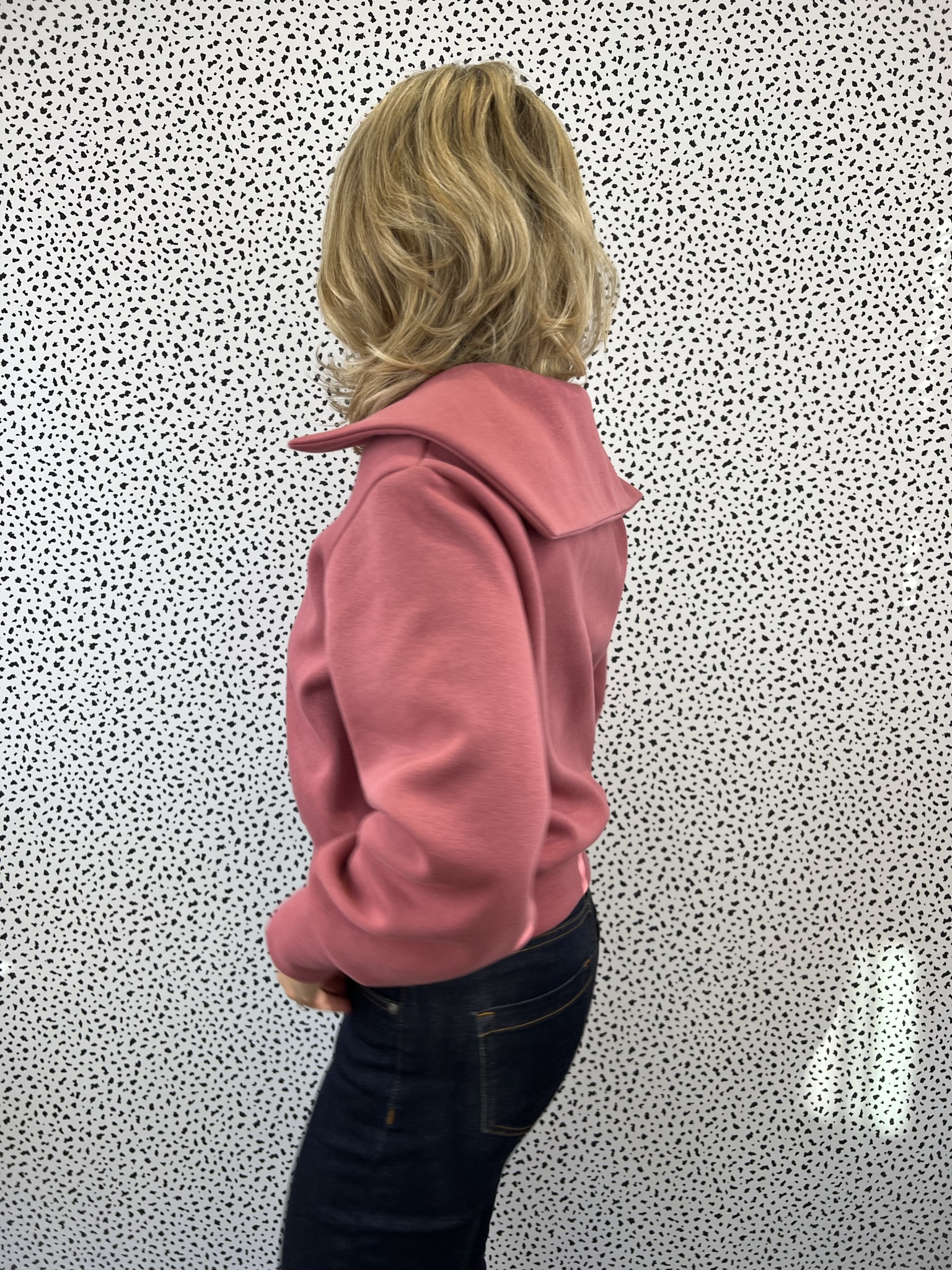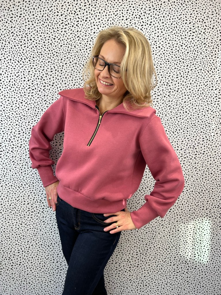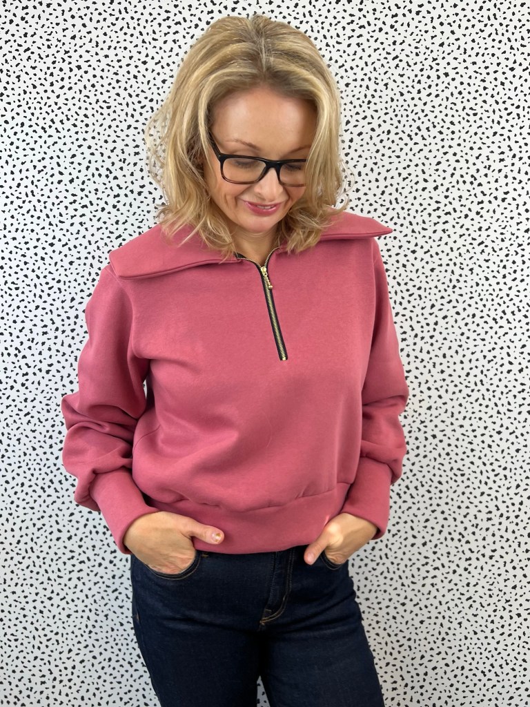 It’s a semi cropped half zip sweatshirt with an exaggerated collar and slightly dropped, slightly balloon sleeves and deep cuffs. The line drawing really appealed to me.