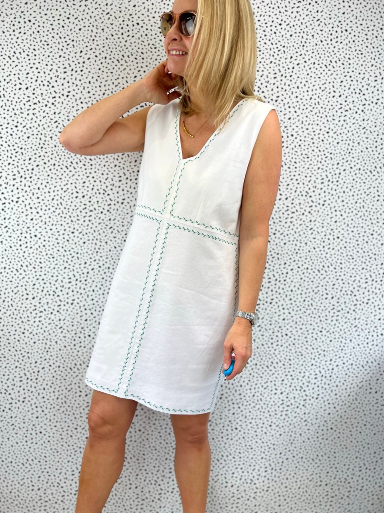 Well! You’ve almost completely designed a whole new dress with all the changes. It looks like it will be a comfortable but pretty dress for your holiday. Very brave with the embroidery, I’m not sure I’d be able to keep it so straight and so neat.