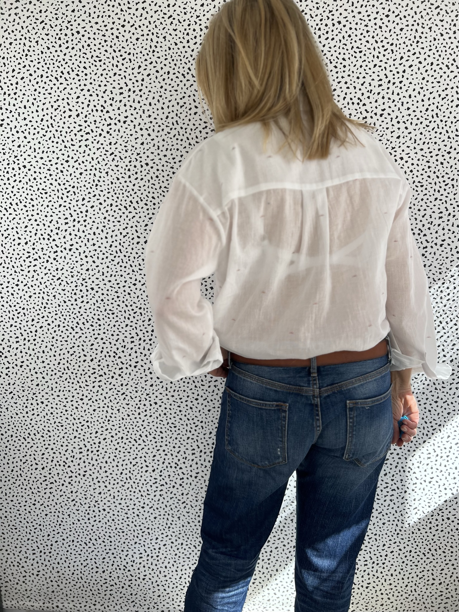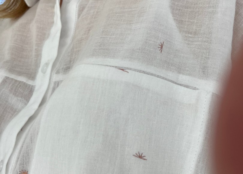 Sewn up for a, now postponed, holiday, in an Atelier Brunette Cotton crepe, a beautiful light weight sheer gauze-like fabric dotted with little golden half sunrises.
