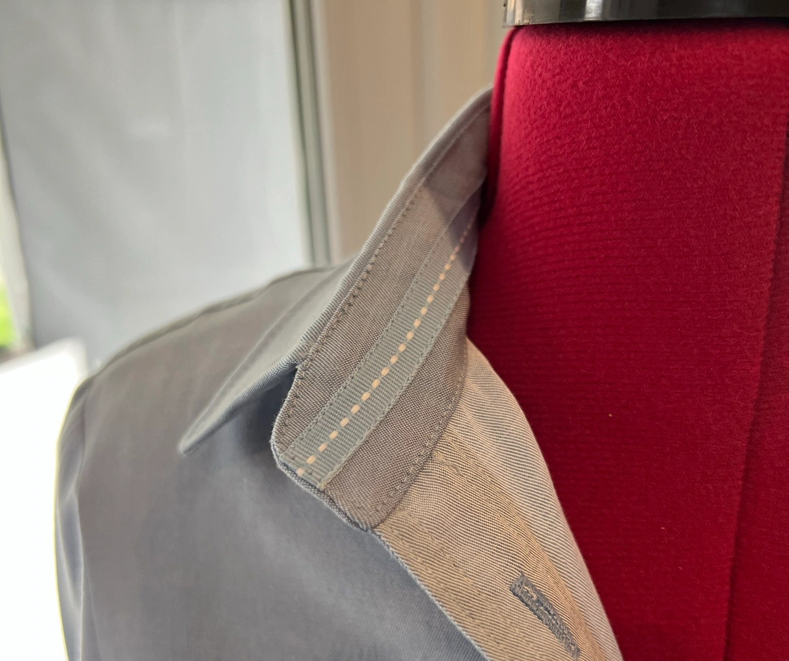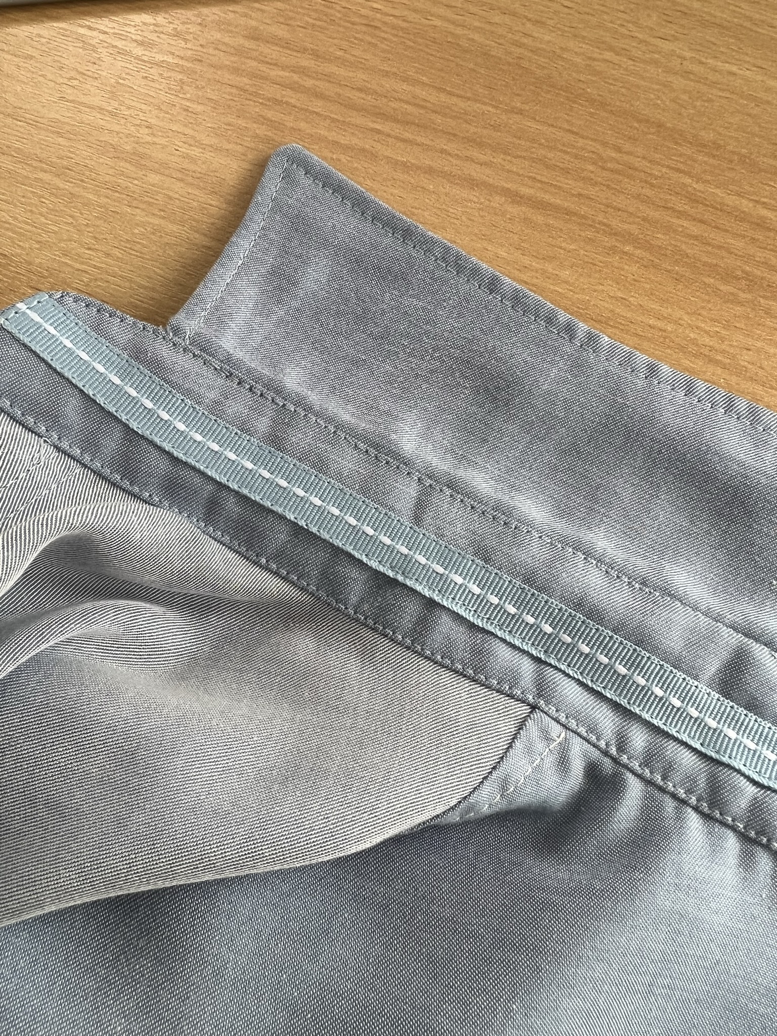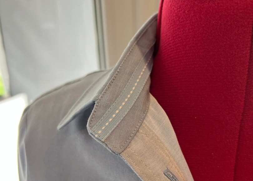 I’ve tried a new sew-in shirt interfacing for the collar from Tailor Mouse. This one is the ‘firm’ sew in interfacing. It feels like the type you might feel from within the collars of men’s ready to wear formal shirts. It’s given me just the right amount of structure. I’ve been experimenting with different sew in interfaces, now that I only use iron-on for facings. I like it.