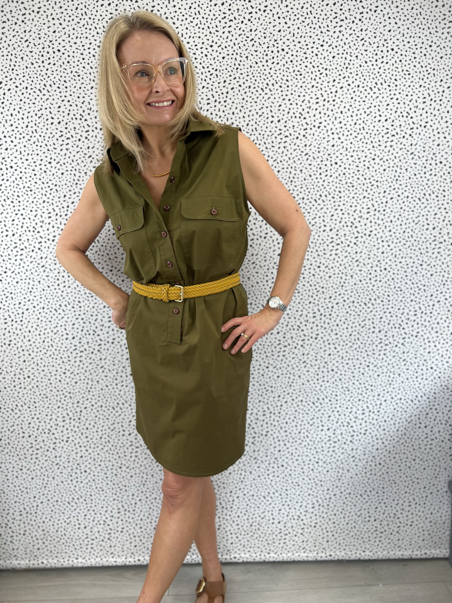 I always seem to find the stretch wovens are a bit stiffer, but I think this worked Rey well for you in this pattern. Love the extra long placket and those pocket flaps are perfect. Lovely on you and looks like the perfect dress to take along on holiday! Enjoy!