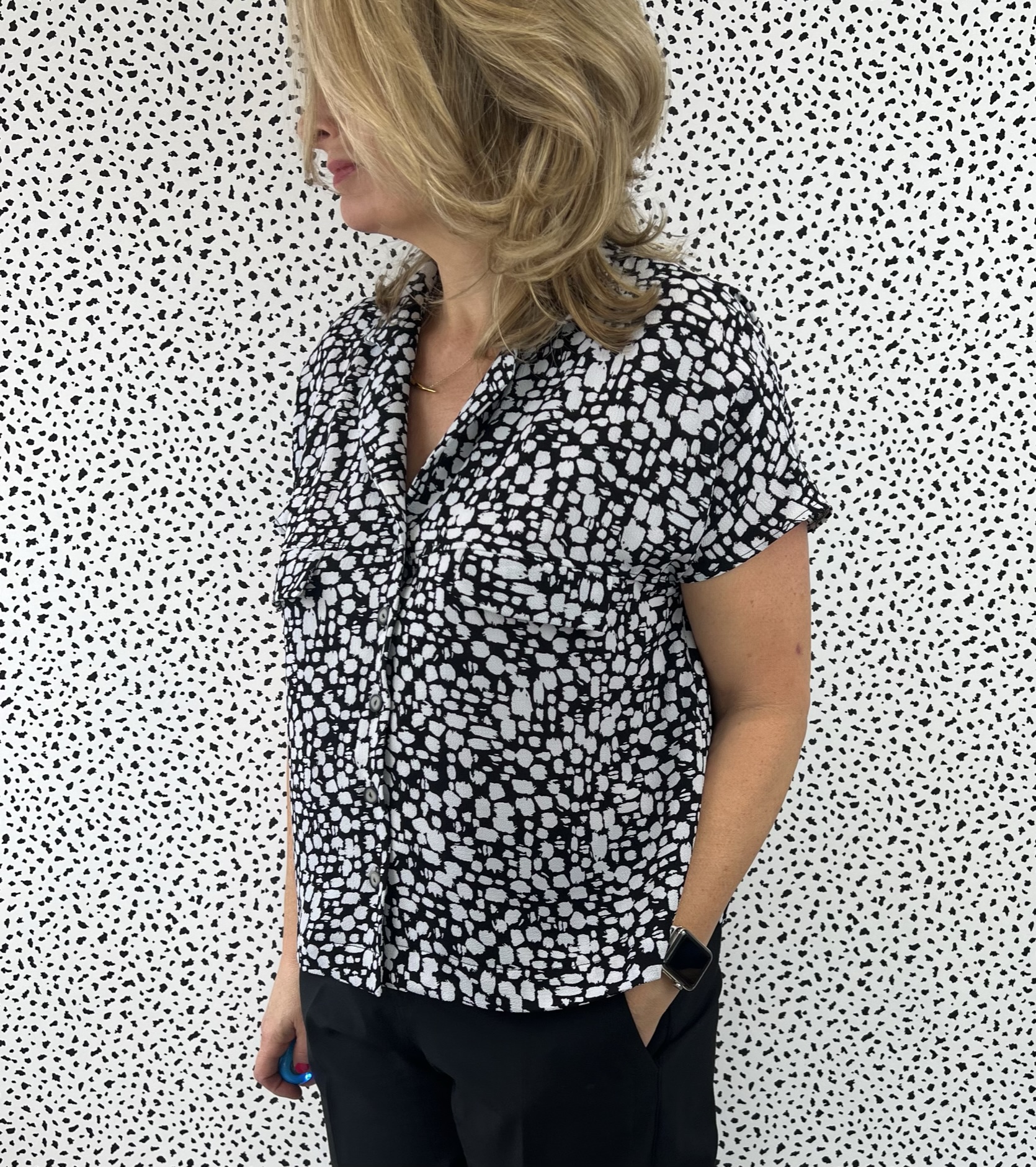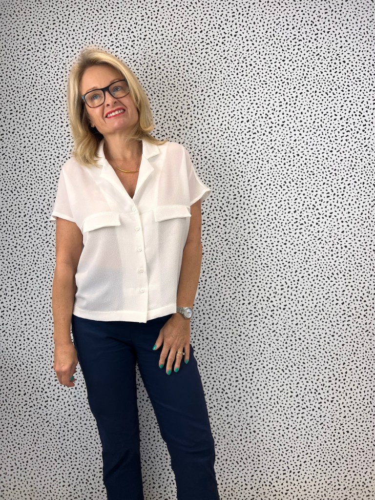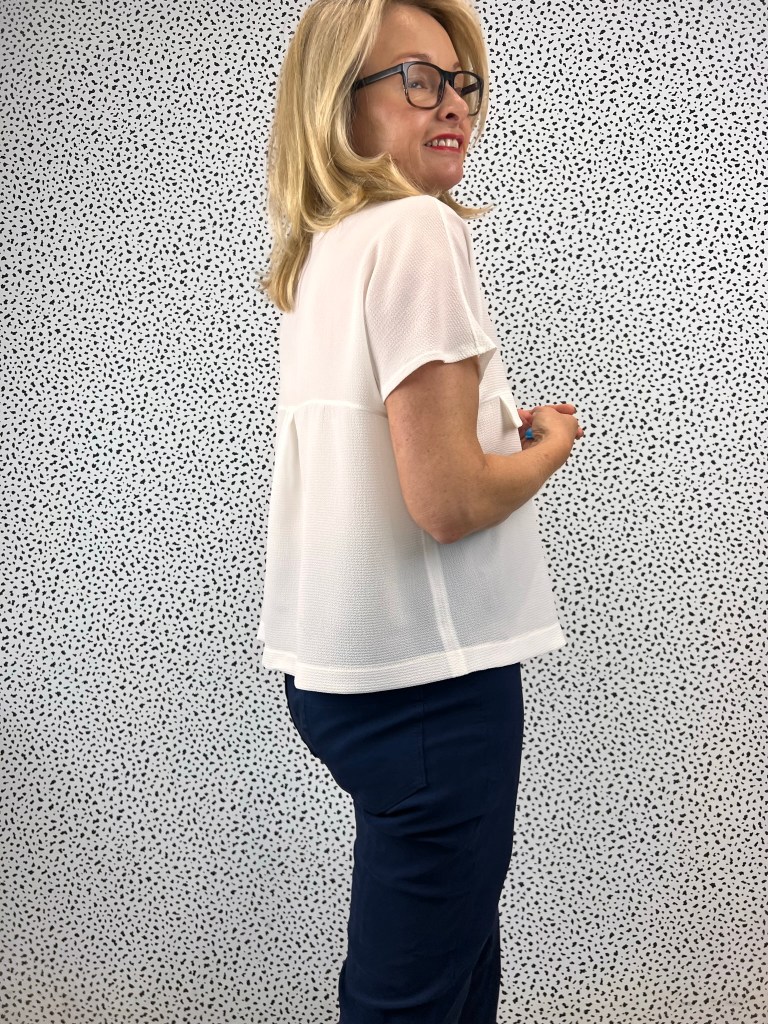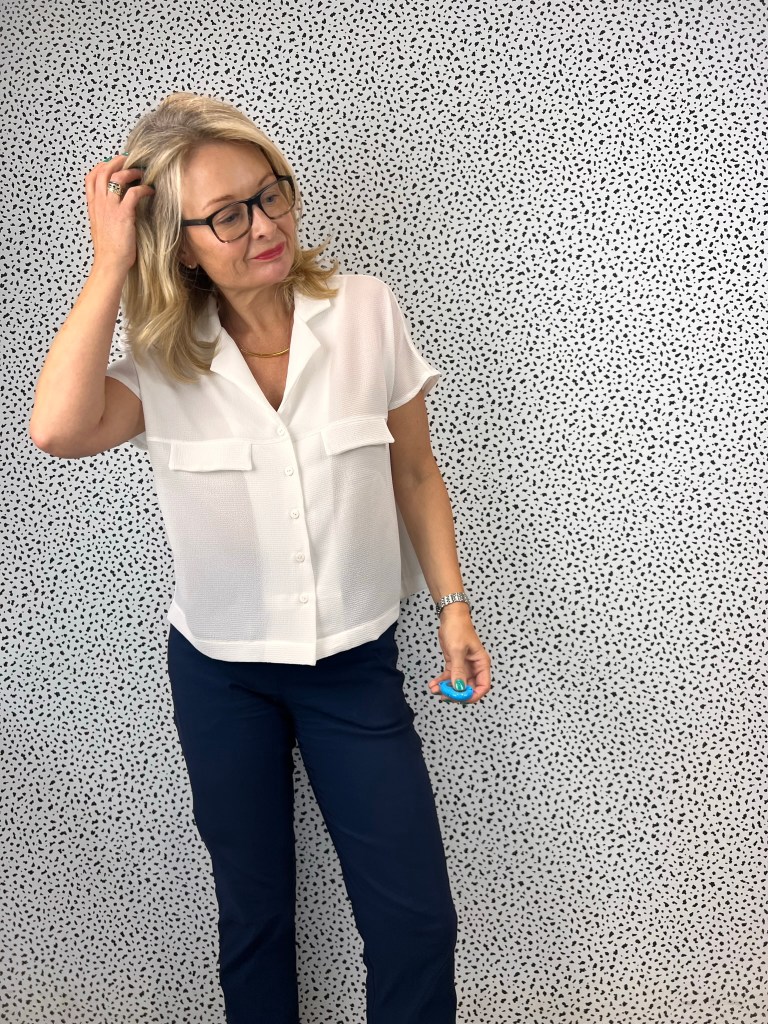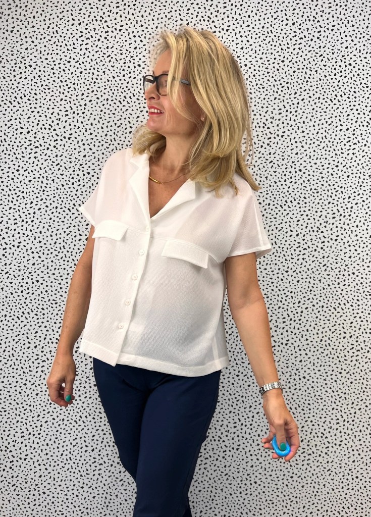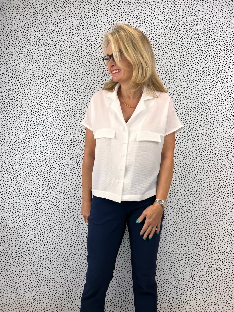 I thought the swingy boxy shape of the Monty Shirt would go well with the fitted silhouette of the trousers.