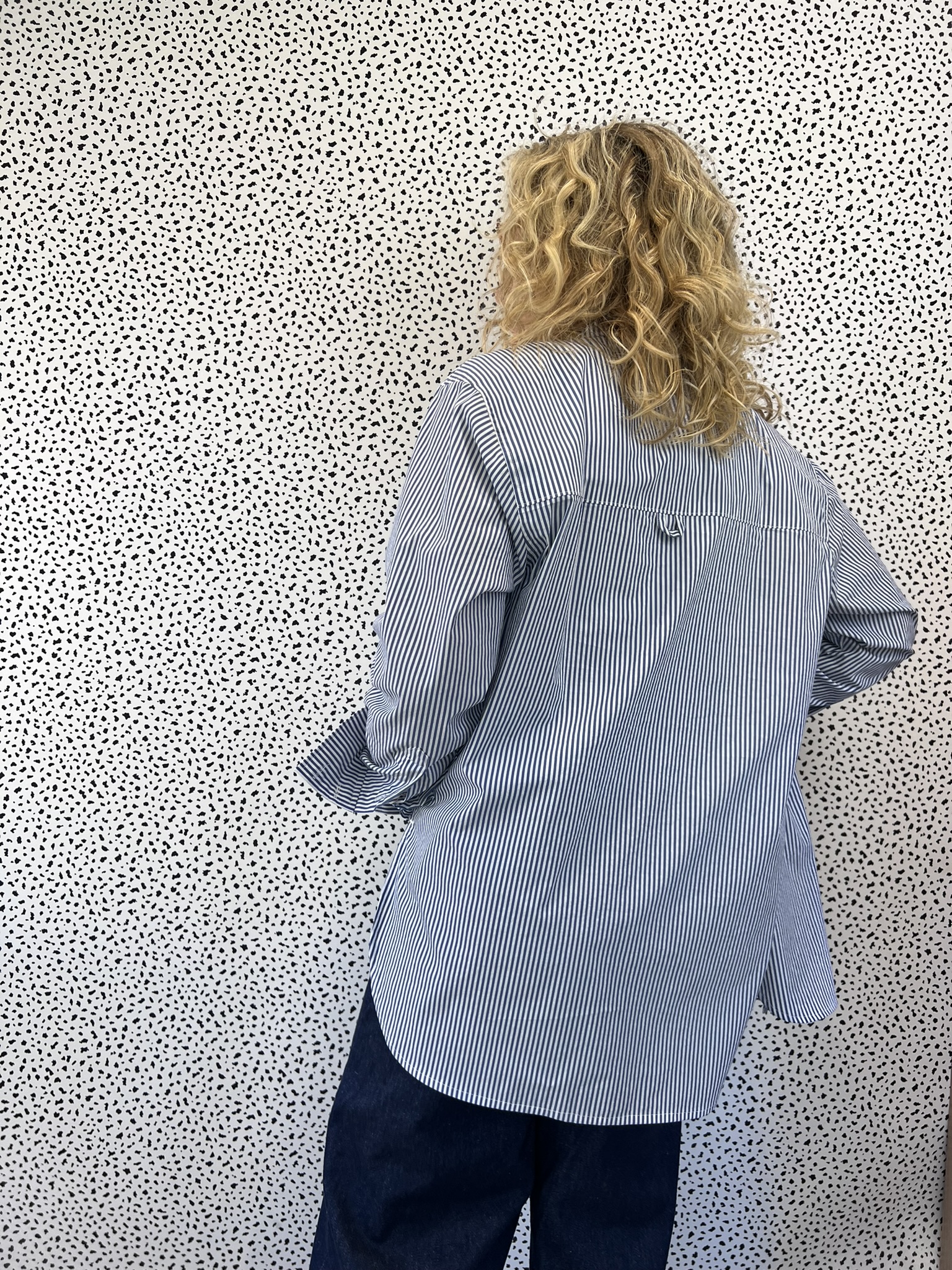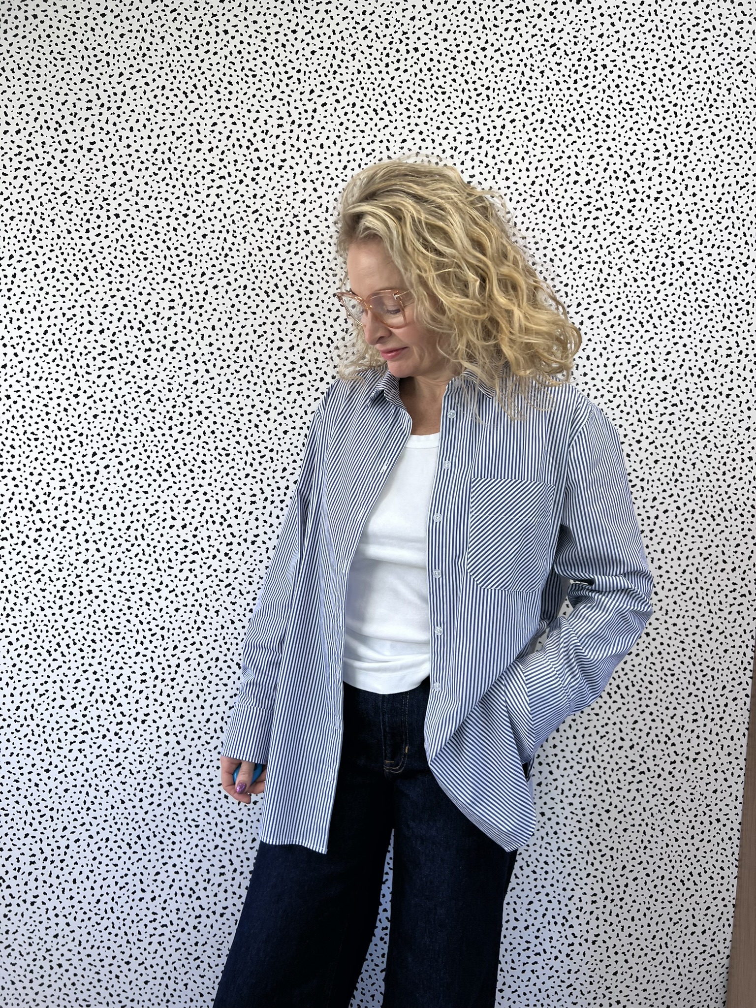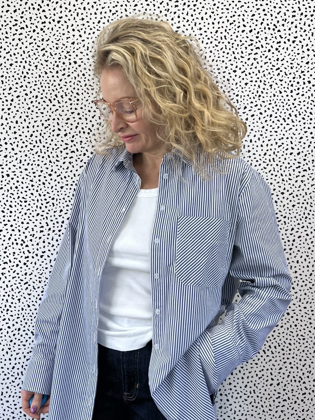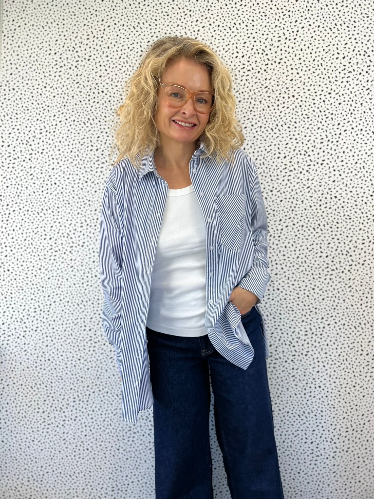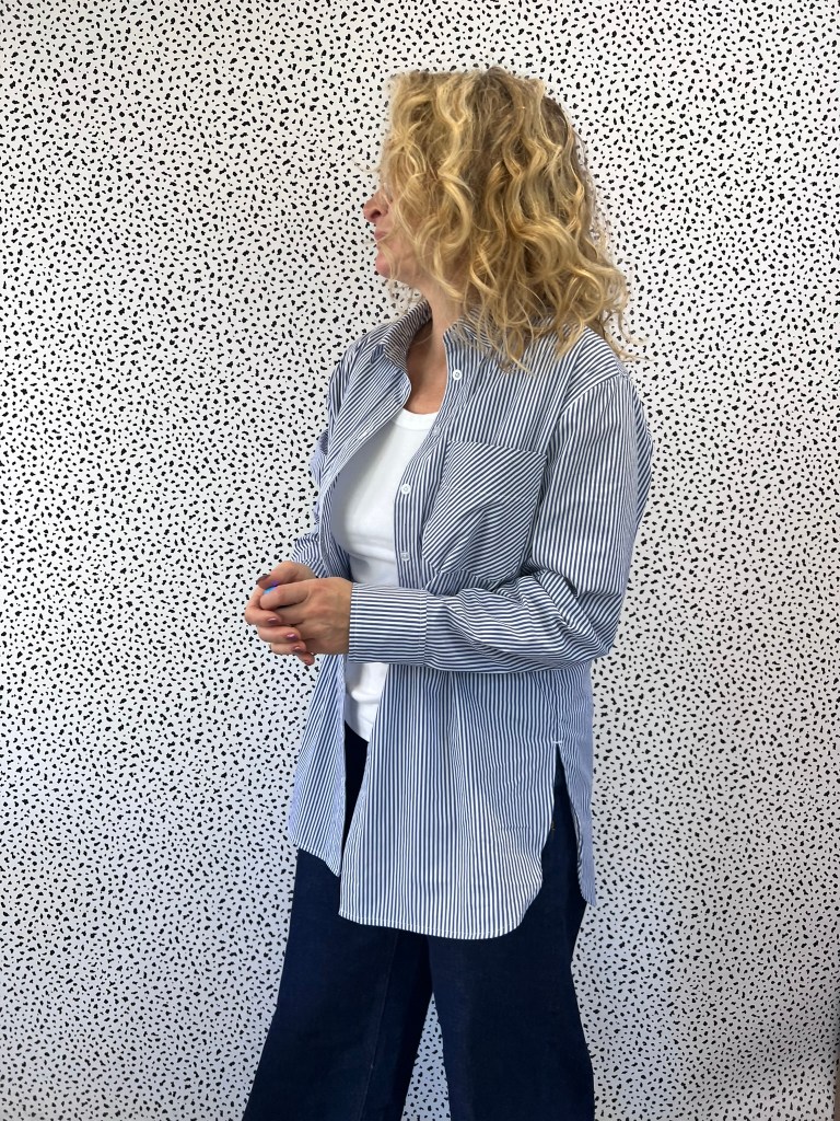 Various versions of an oversized blue and white striped shirt have been popping up on my social media since the summer.